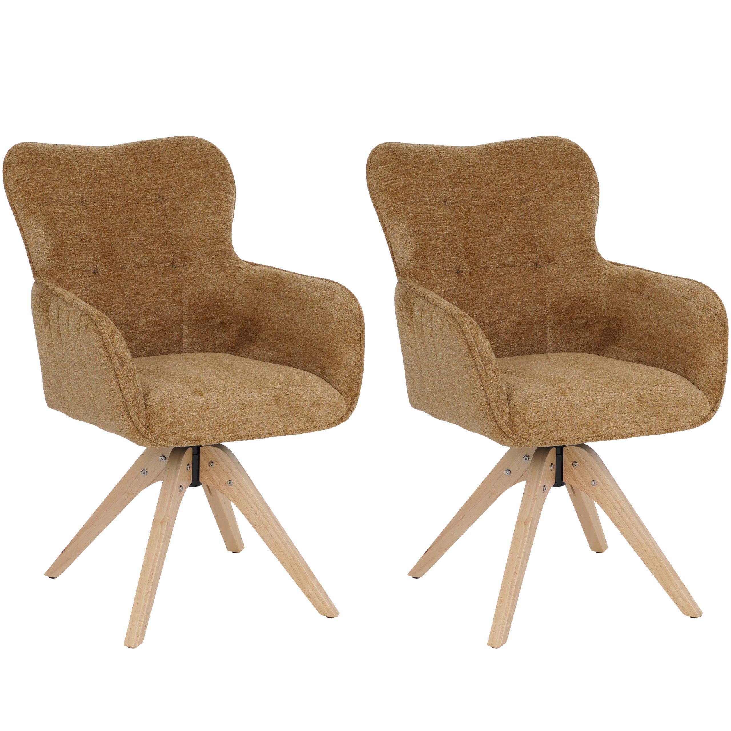 Mendler 2er-Set Esszimmerstuhl HWC-Q35, drehbar Auto-Return, Stoff/Textil 680g/m² Holz
