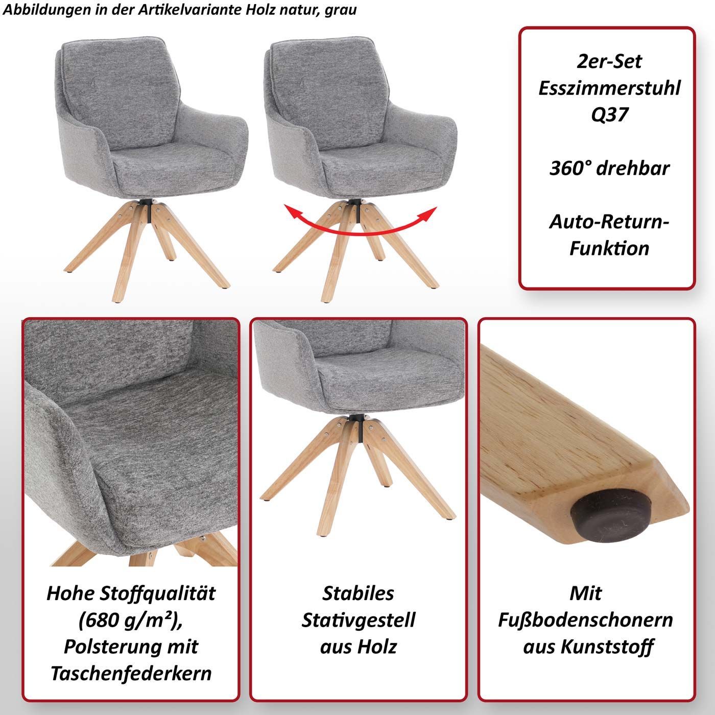 Mendler 2er-Set Esszimmerstuhl HWC-Q37, Auto-Return, Stoff 680g/m² Chenille Öko-Tex Holz MVG