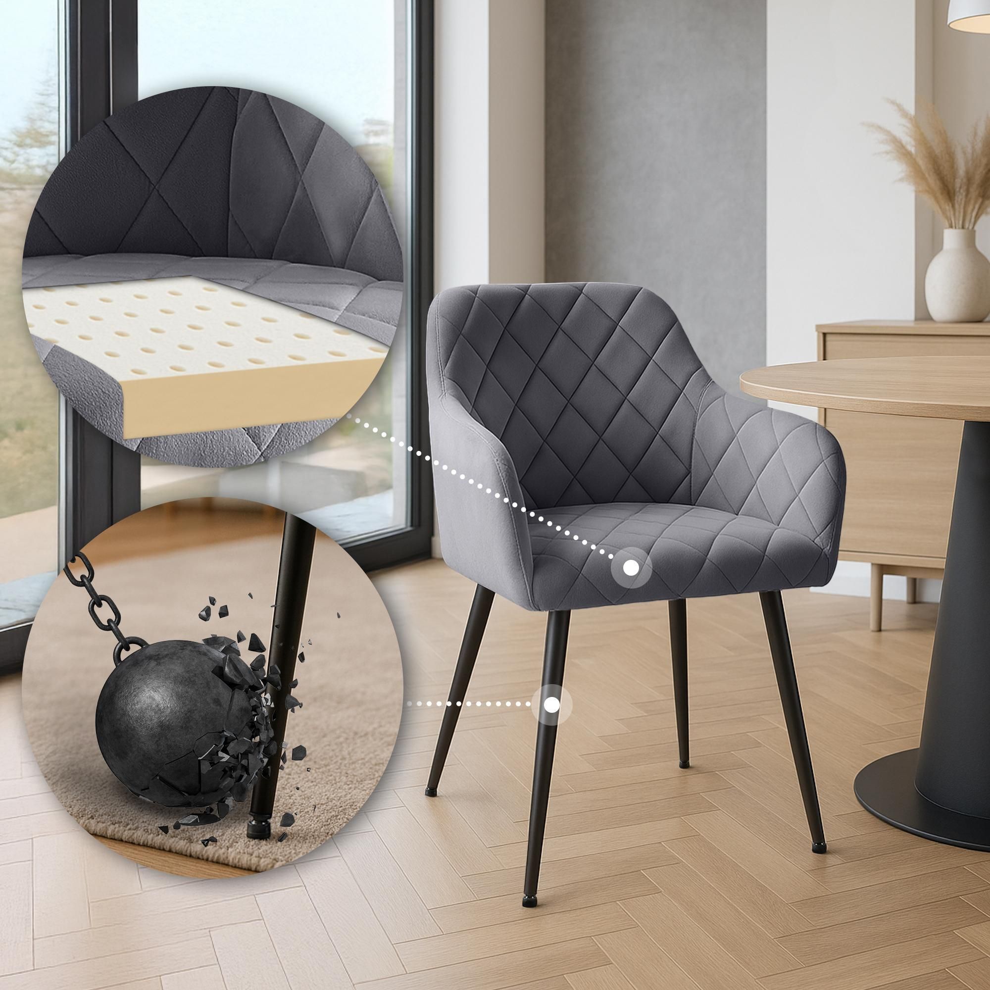 2er Set Esszimmerstuhl Monett Samt B, dunkelgrau