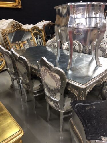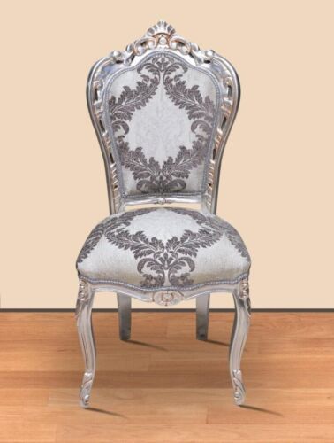 2er Set Esszimmerstuhl Silber Stoff mit Muster