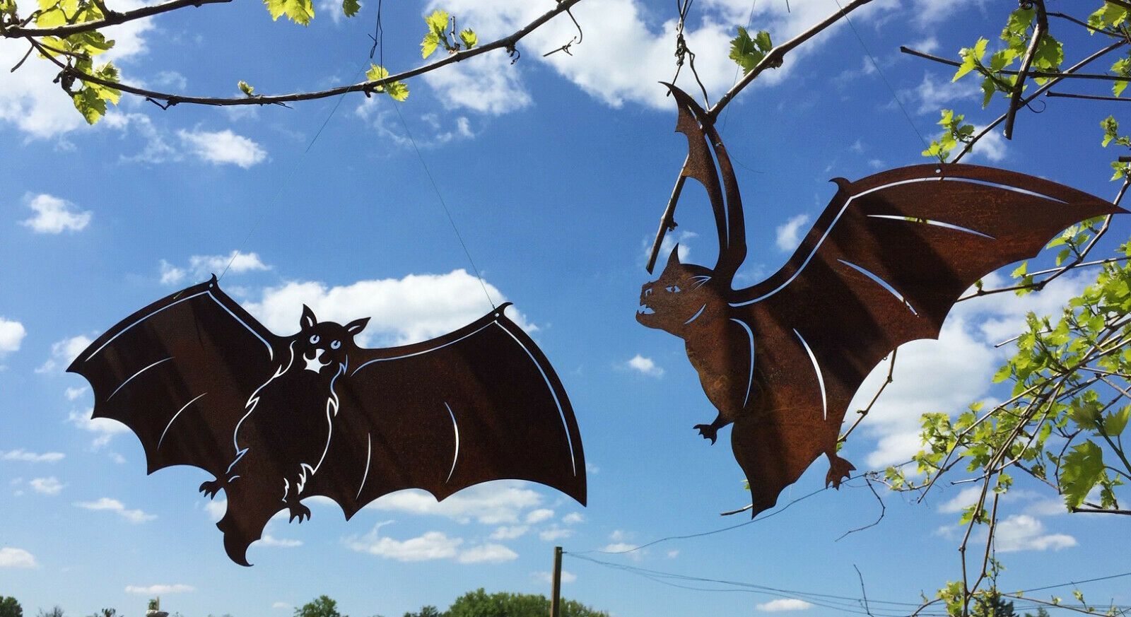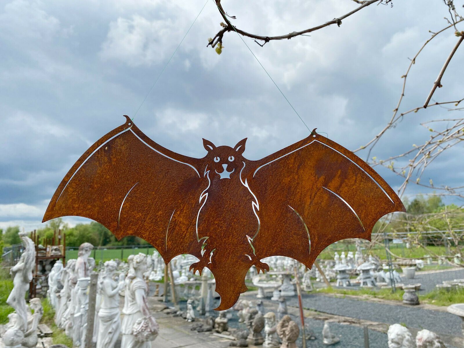 FLEDERMÄUSE ZUM HÄNGEN 2er Set Edelrost Diese beiden Fledermäuse sind eine schöne Dekoration für Haus und Garten - nicht nur zur Halloween-Zeit. Jedes Stück ist in Handarbeit mit großer Sorgfalt und Liebe zum Detail gefertigt und somit ein Unikat, deshalb kann auch die Oberfläche mit der Edelrostpat
