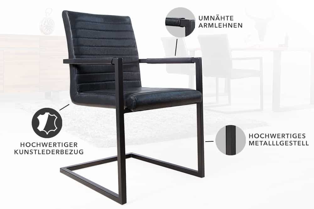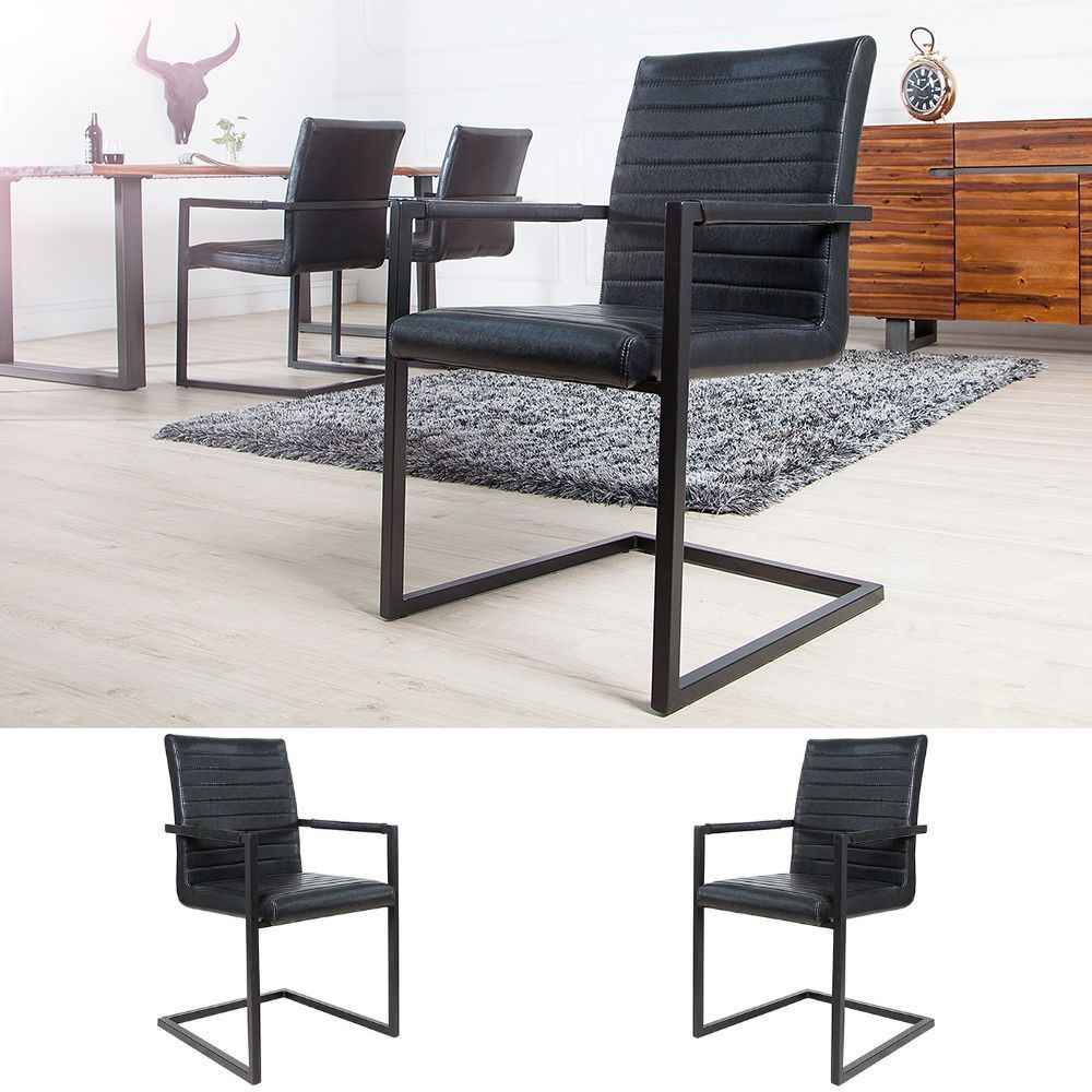 2er Set Freischwinger MENGA schwarz Industrial-Look schwarzes Metallgestell