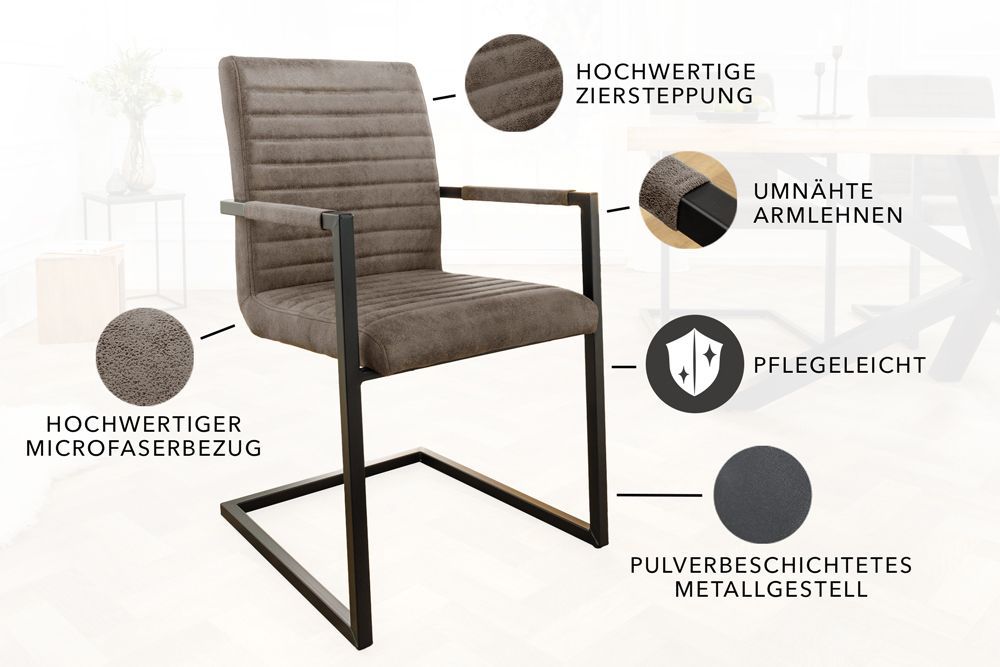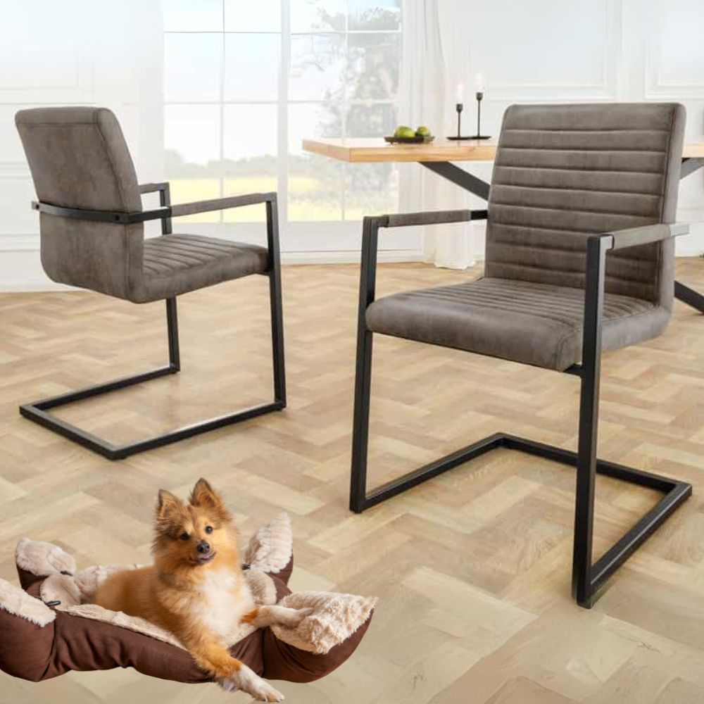 2er Set Freischwinger MENGA taupe-grau Industrial-Look schwarzes Metallgestell