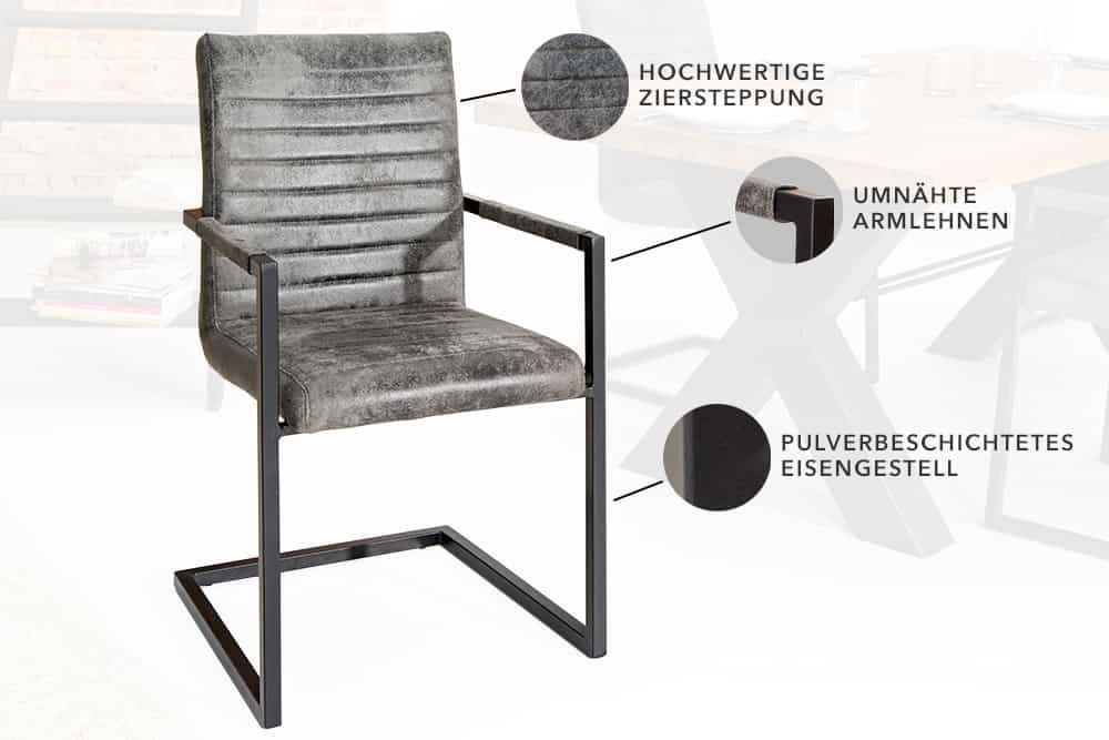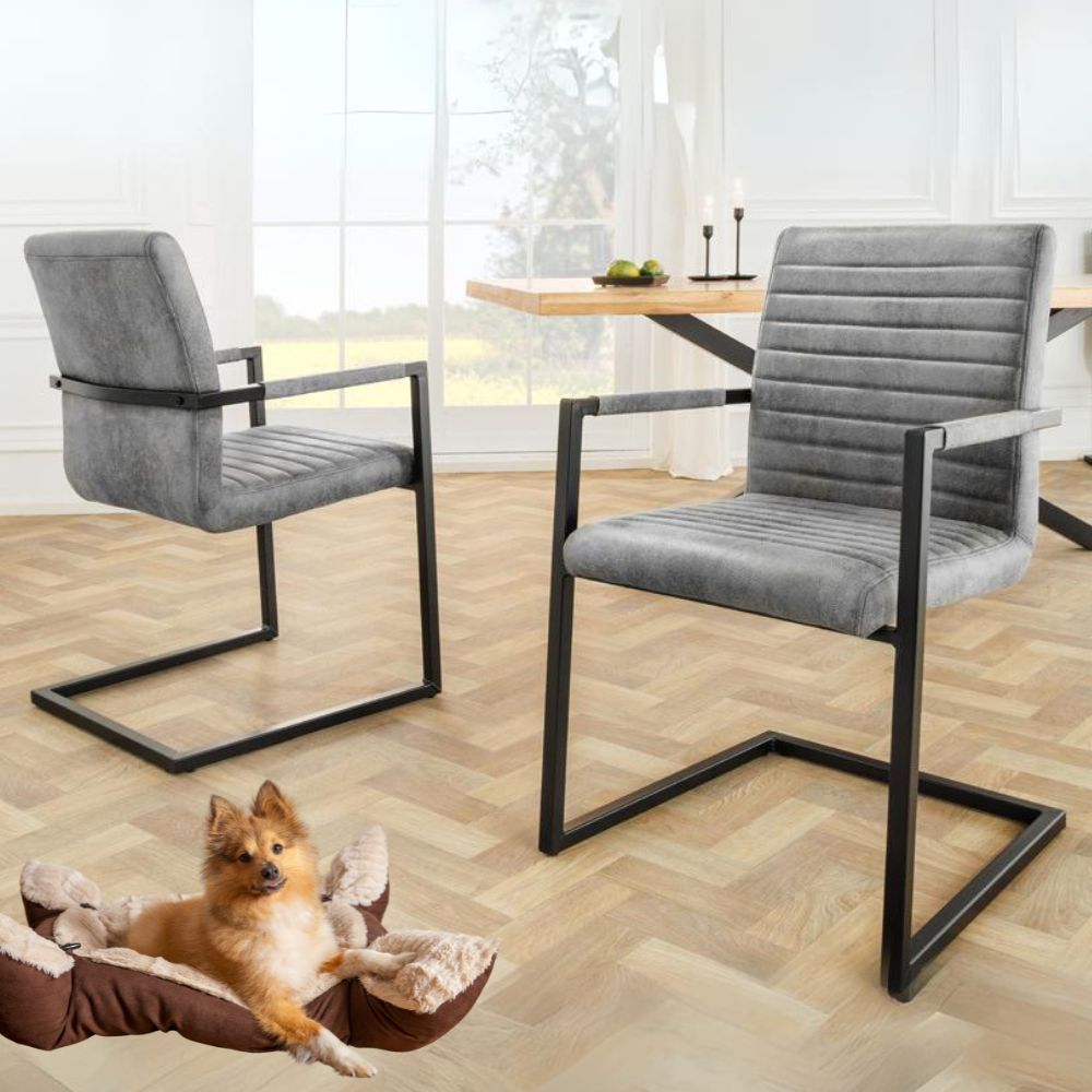 2er Set Freischwinger MENGA vintage-grau Industrial-Look schwarzes Metallgestell
