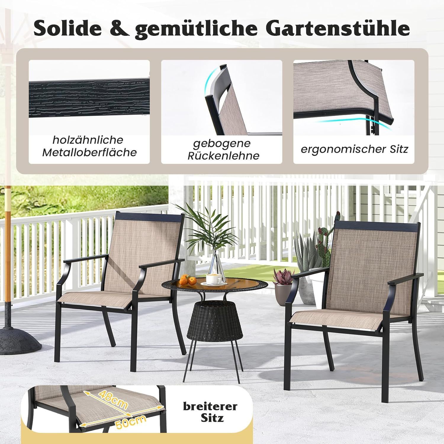 2er Set Gartenstühle, Terrassenstühle, Balkonstühle mit atmungsaktiver Sitzfläche