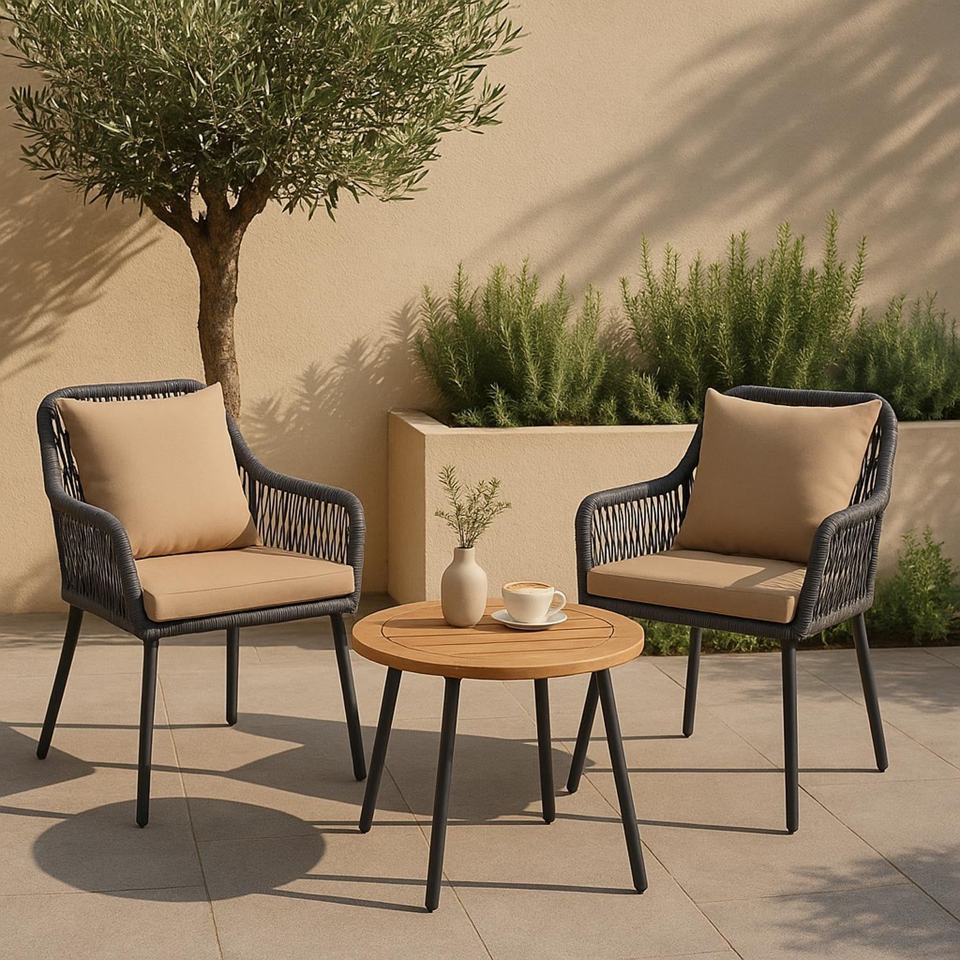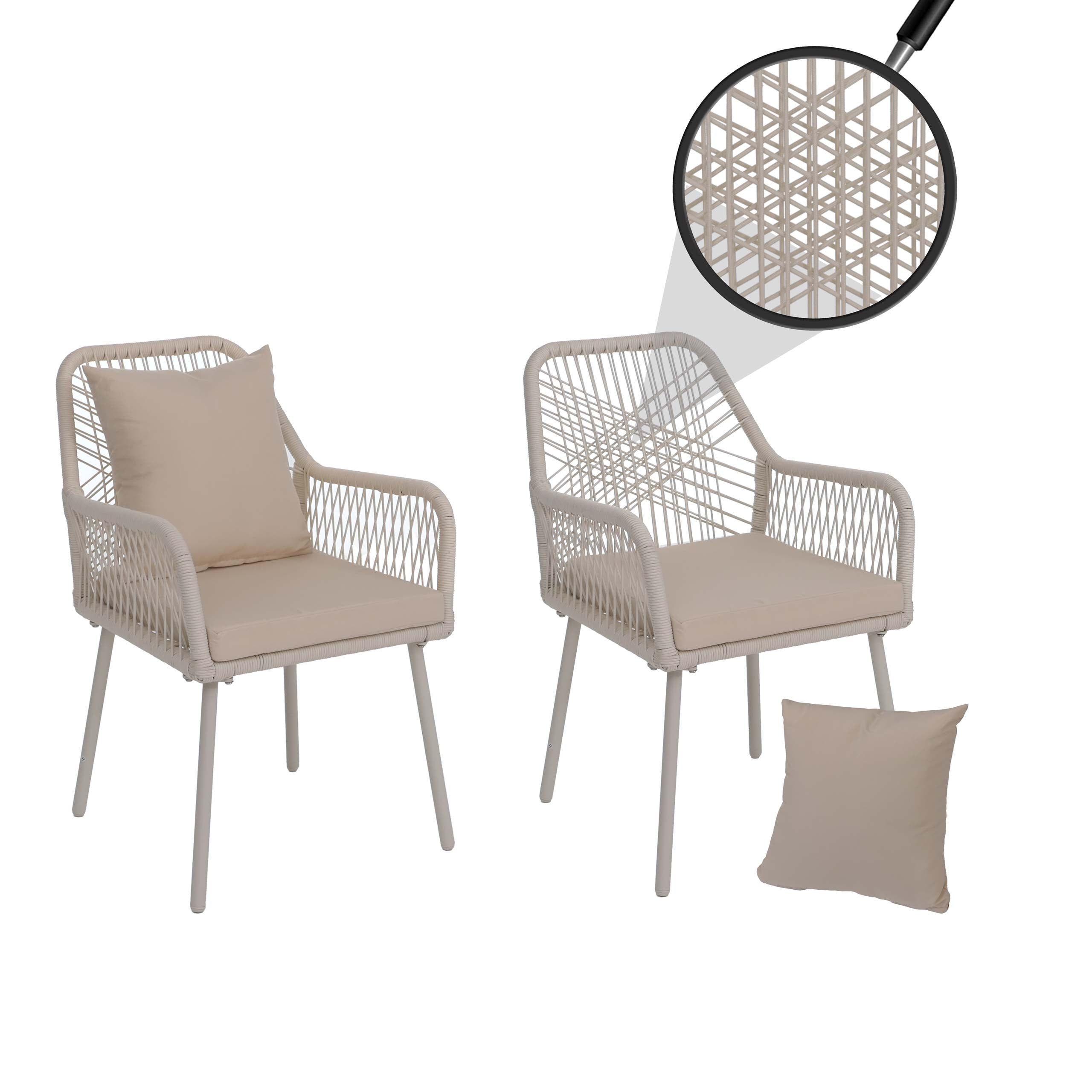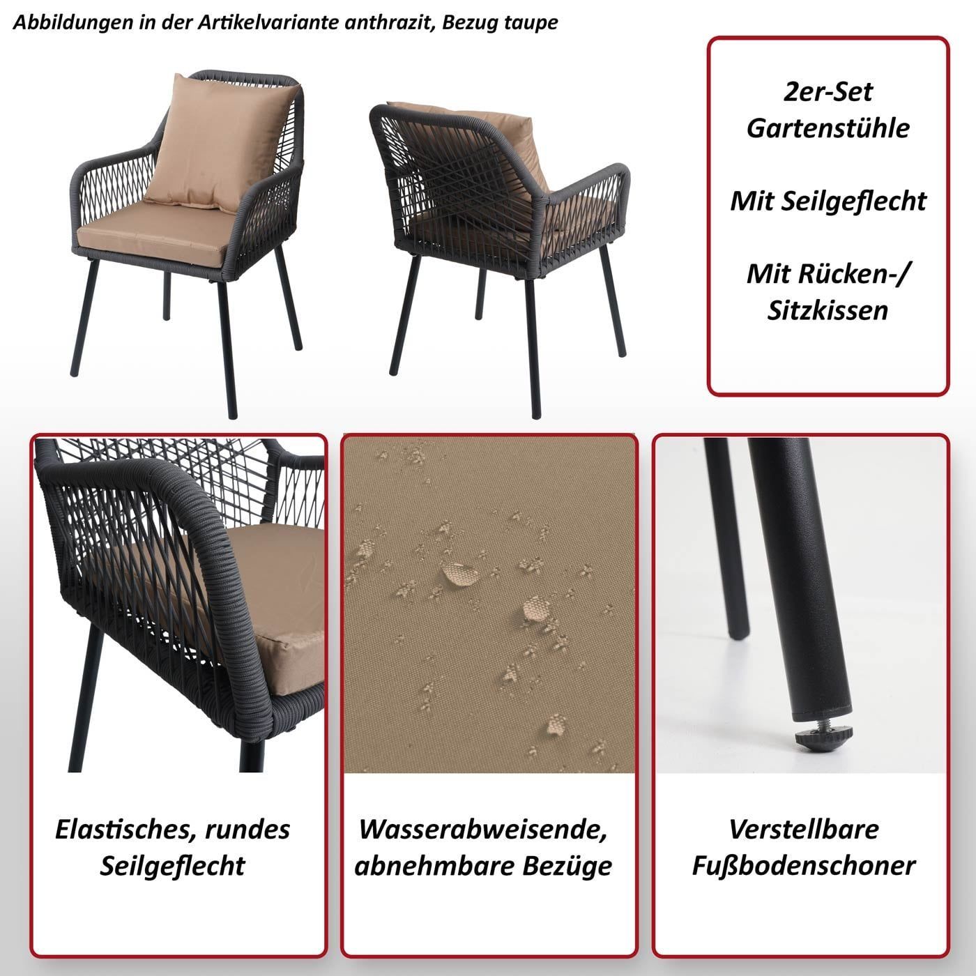 Mendler 2er-Set Gartenstuhl HWC-O12, Outdoor Sitz-/Rückenpolster Aluminium Seilgeflecht Rope