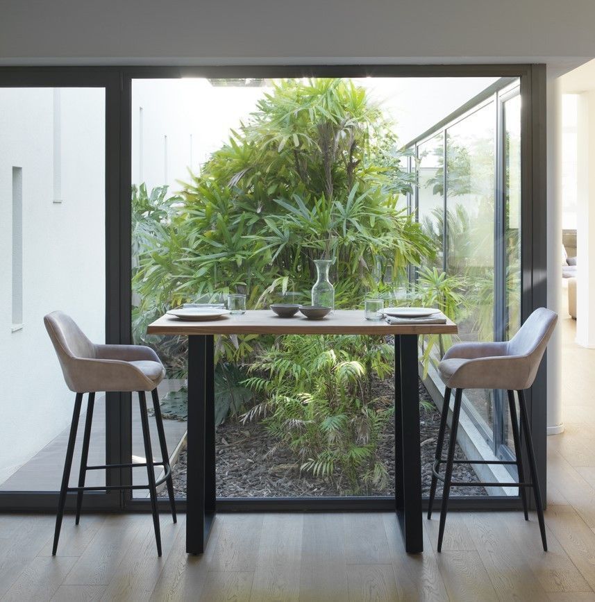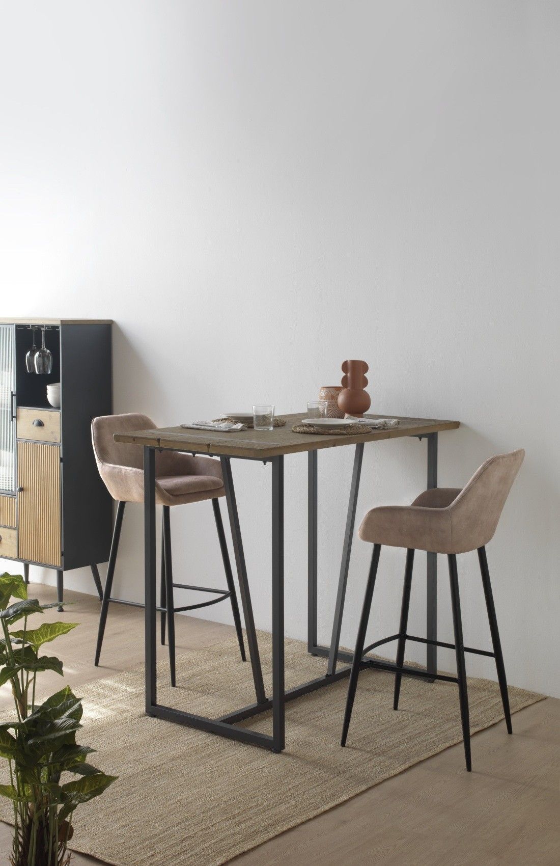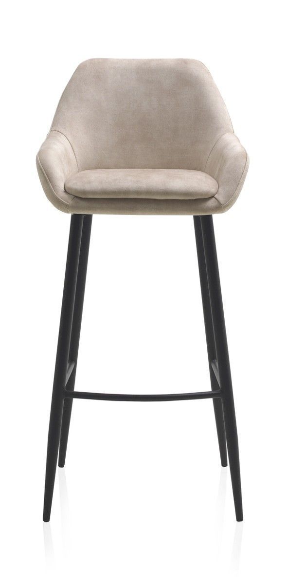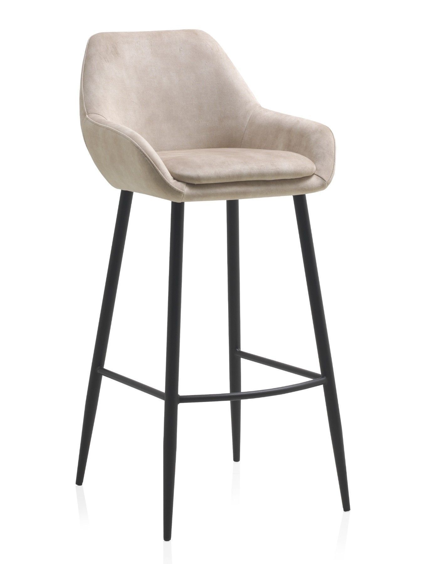 2er-Set gepolsterte Hocker beigefarben mit schwarzen Metallbeinen