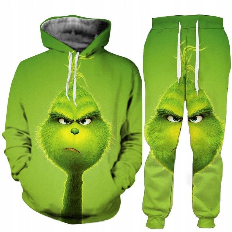 2er set Grinch Hoodie Jogginghose Set Grün Monster Pullover Herren Sweatshirt Anzug