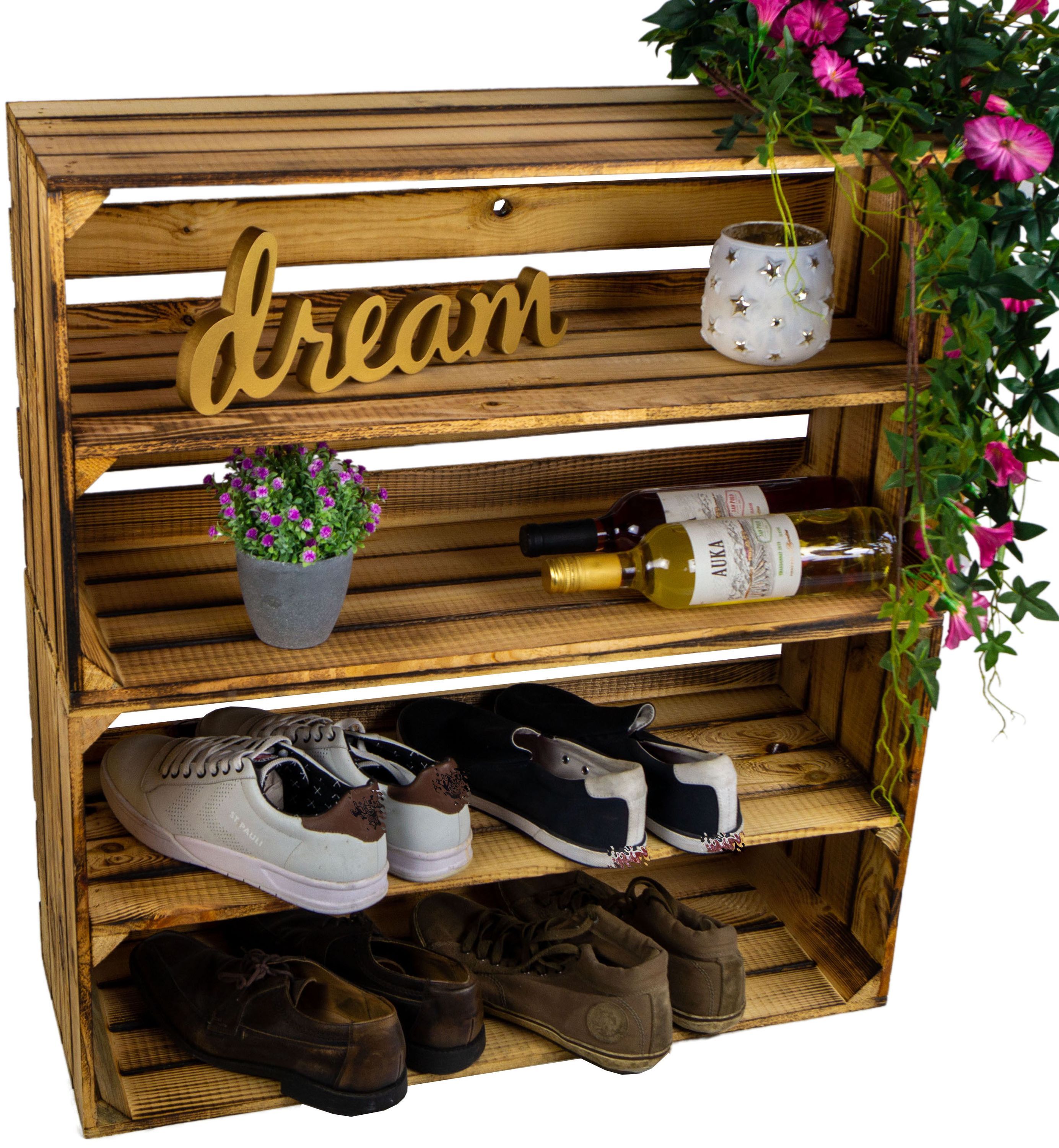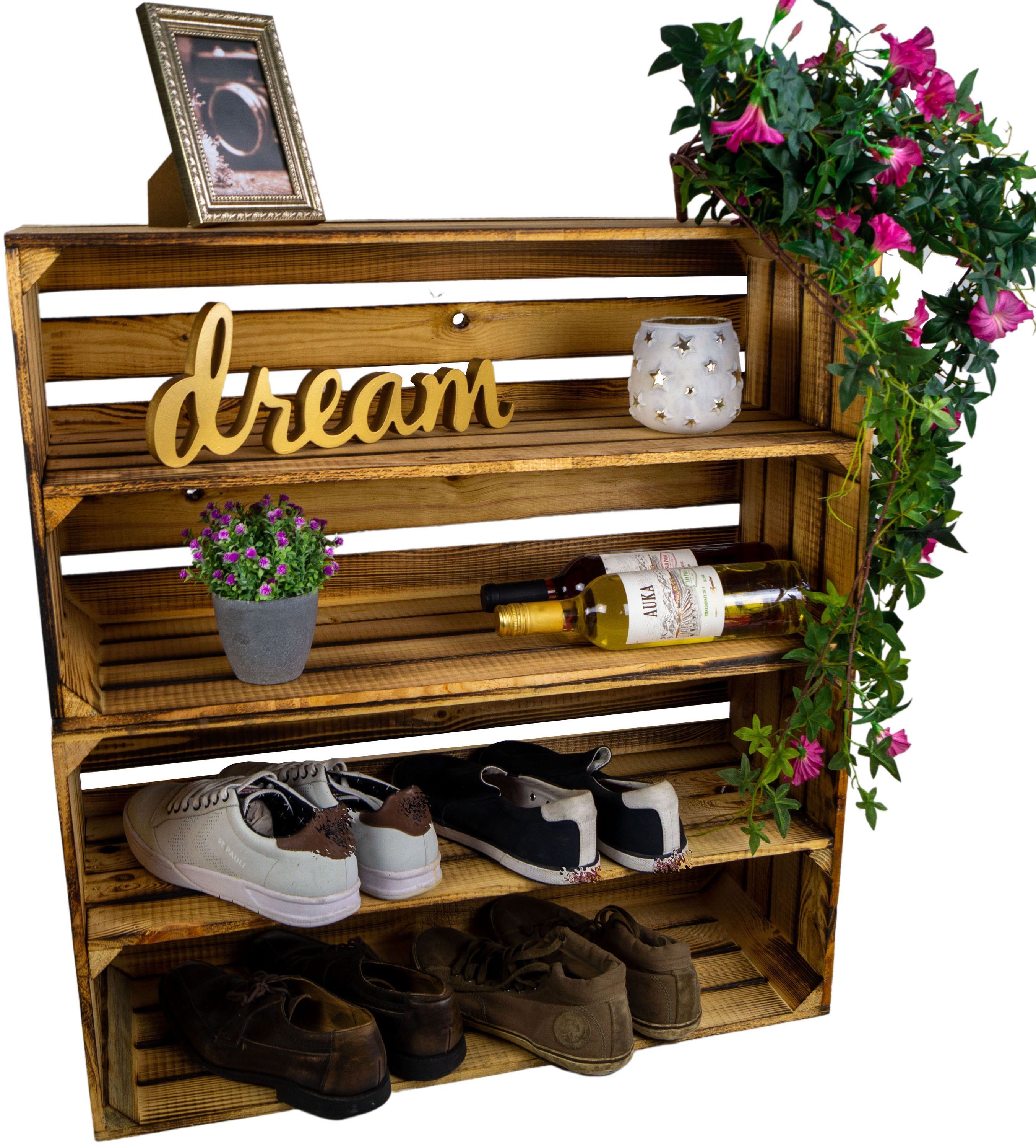 2er Set grosse Regalkiste Tosca geflammt Schuhregal Weinkiste Obstkiste Holzkisten