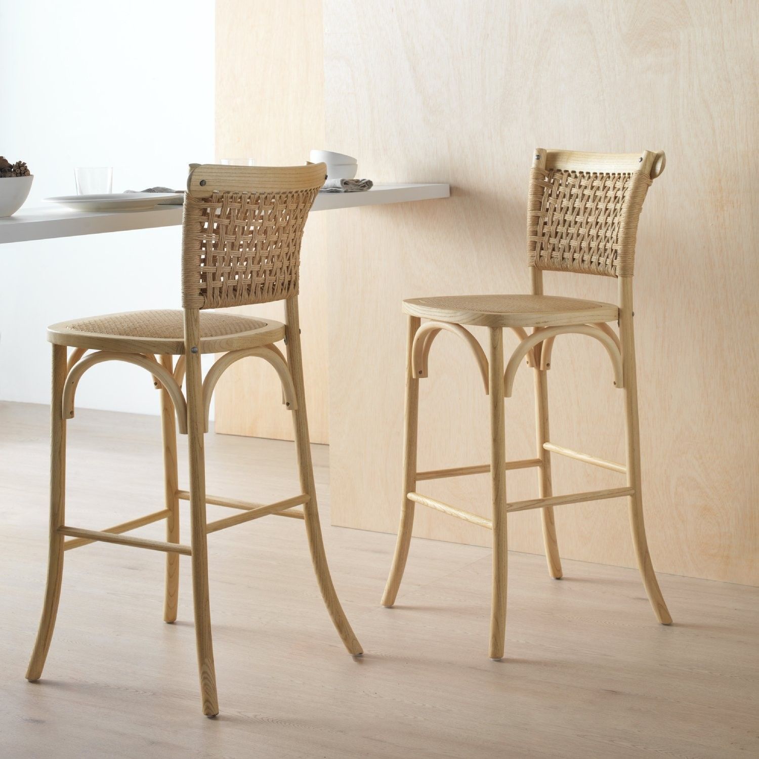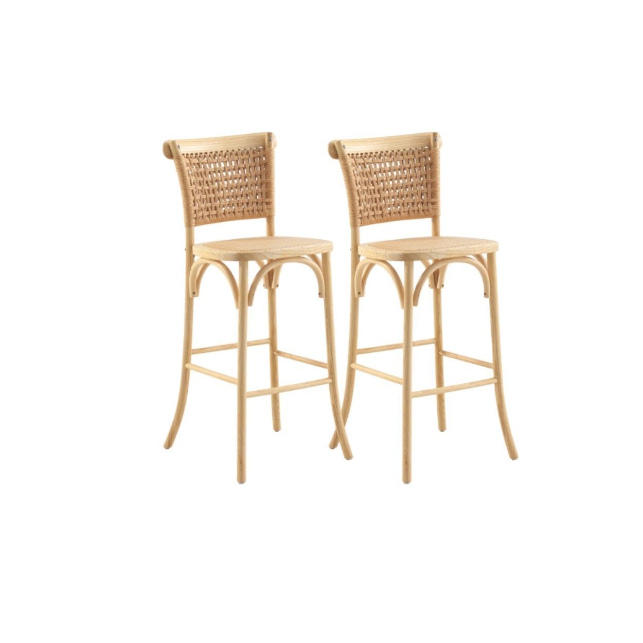 • vidaXL Barhocker 2 Stk. Rattan Natur