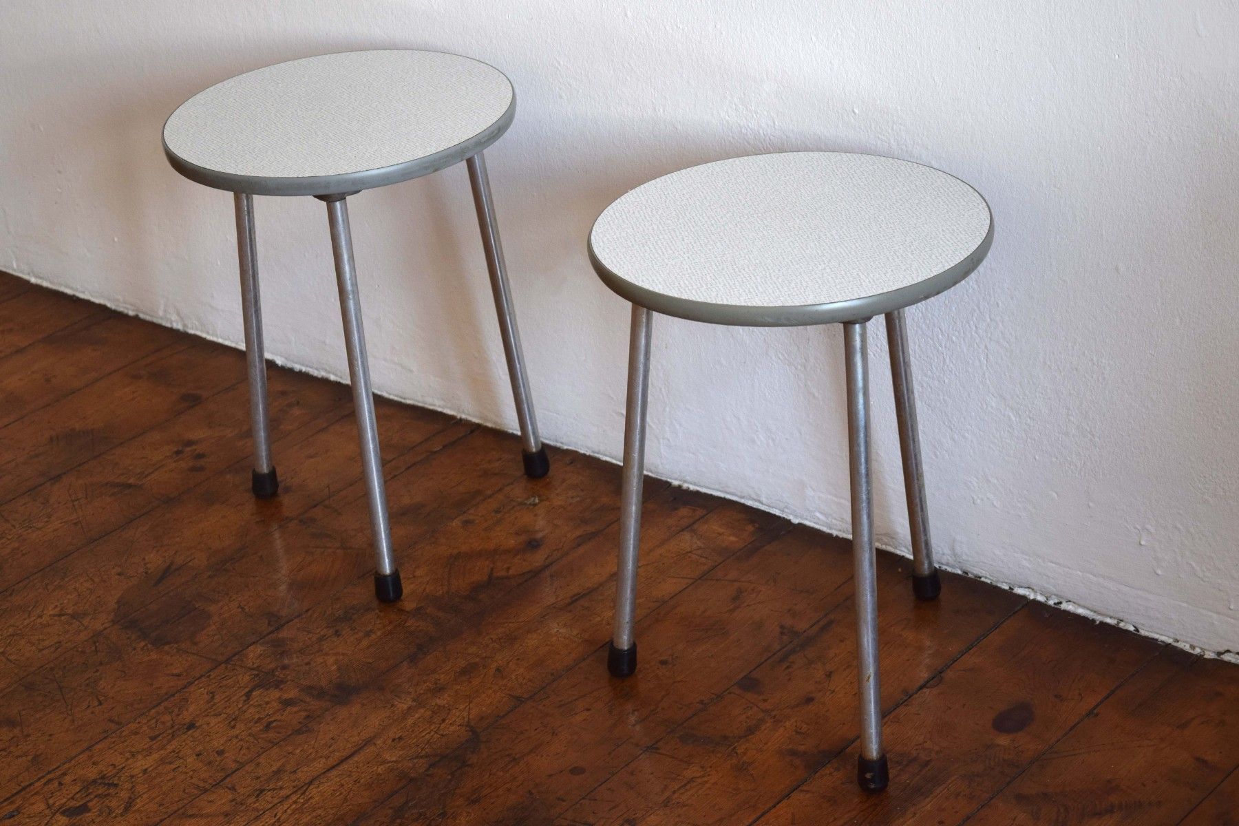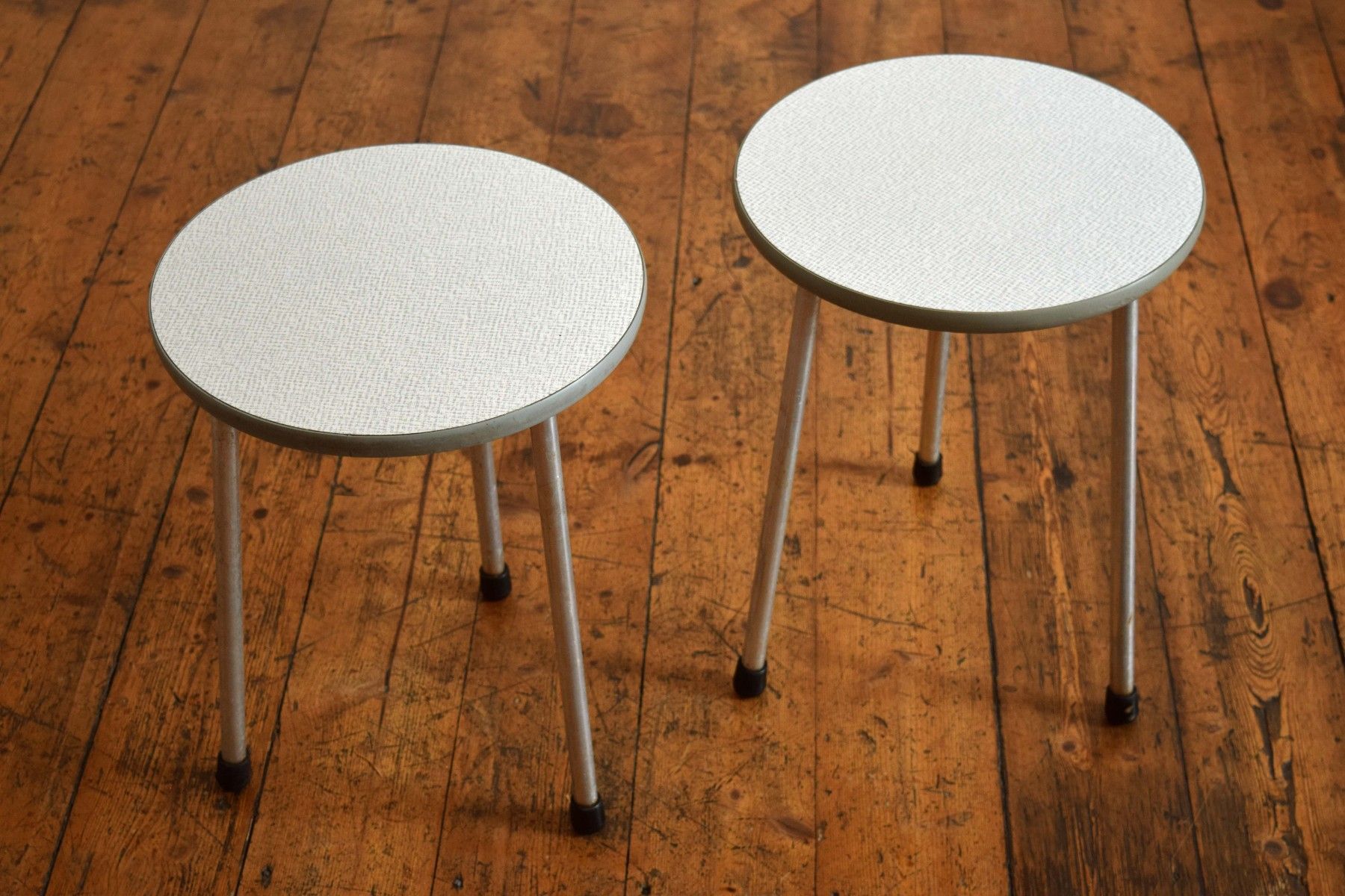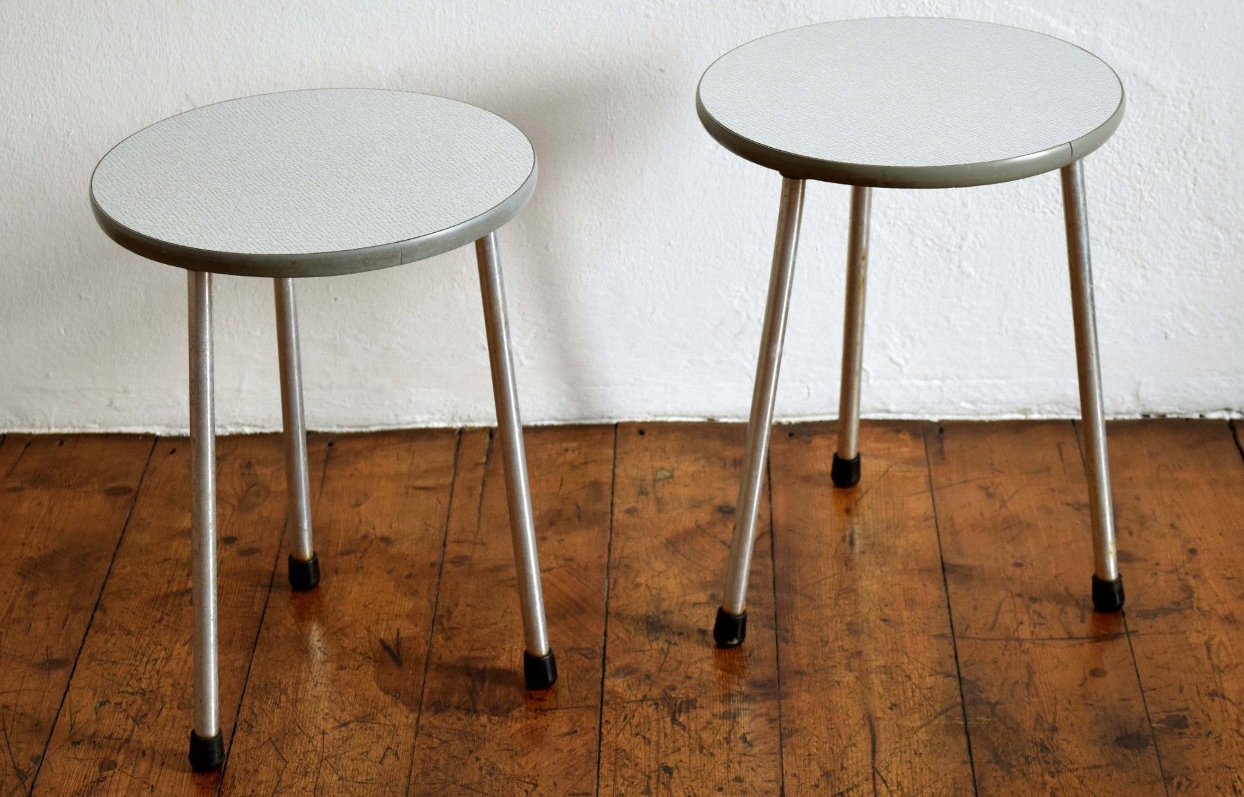 2er Set Hocker Rund Antik Alt Vintage Resopal Vintage DDR Metall 70er Mid Century
