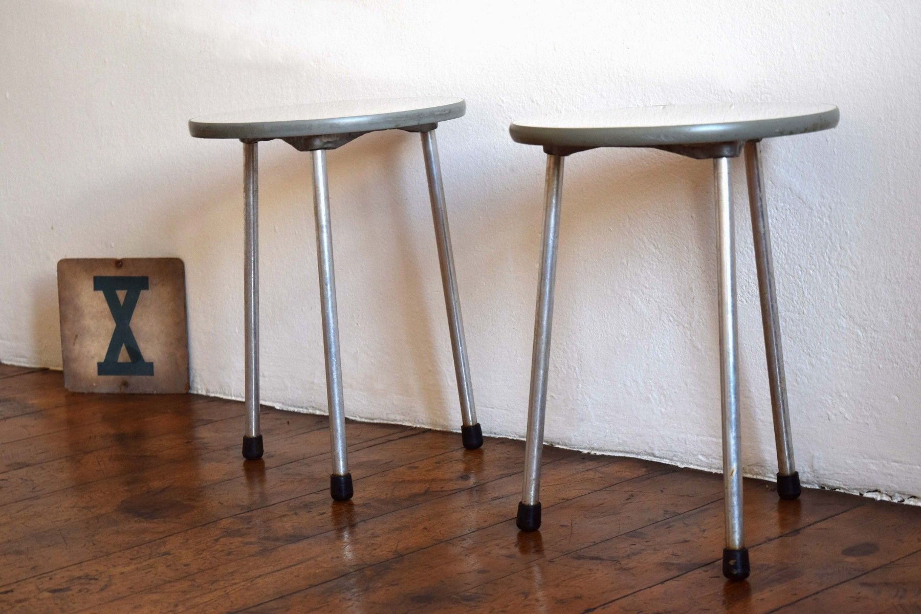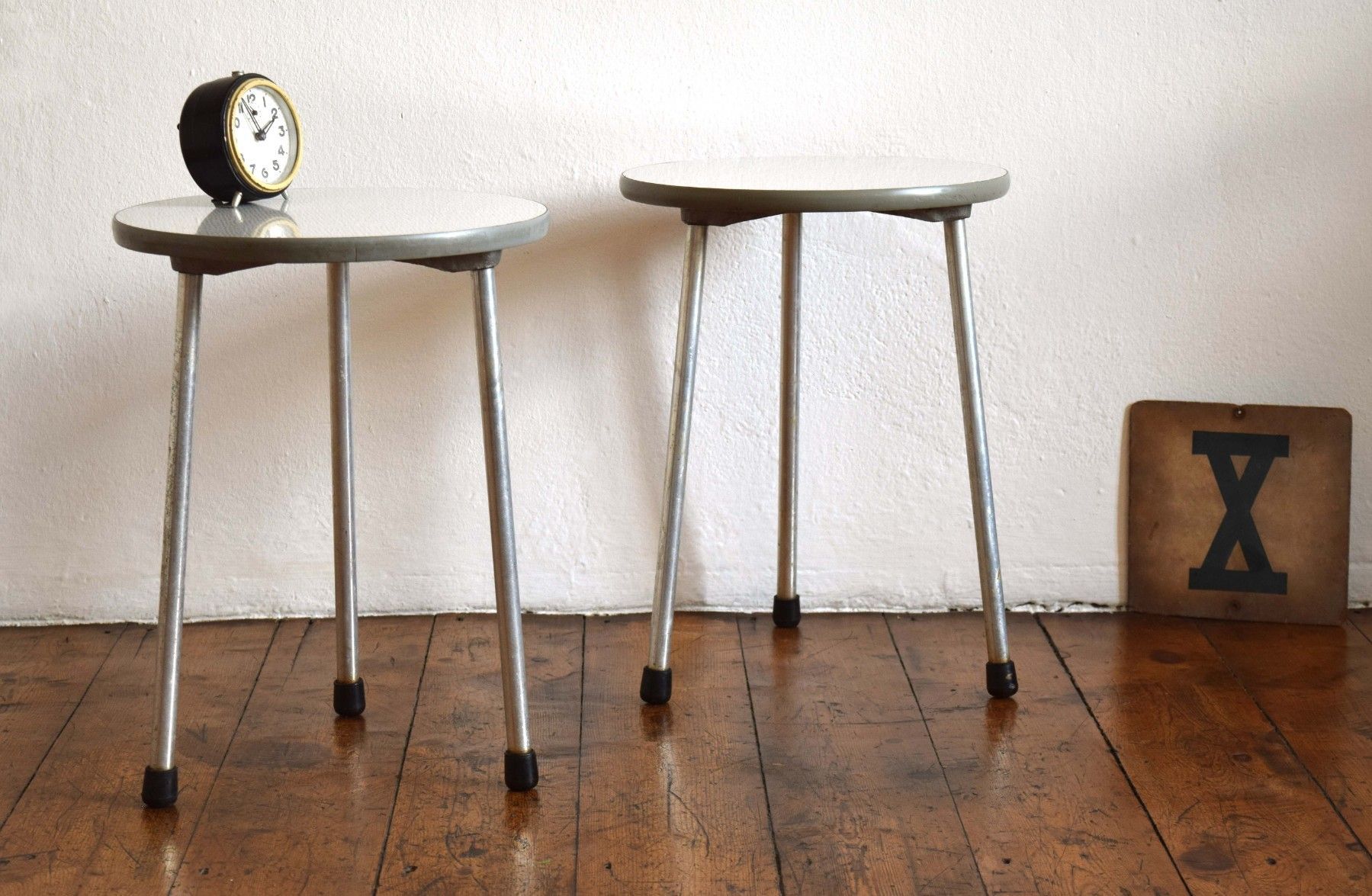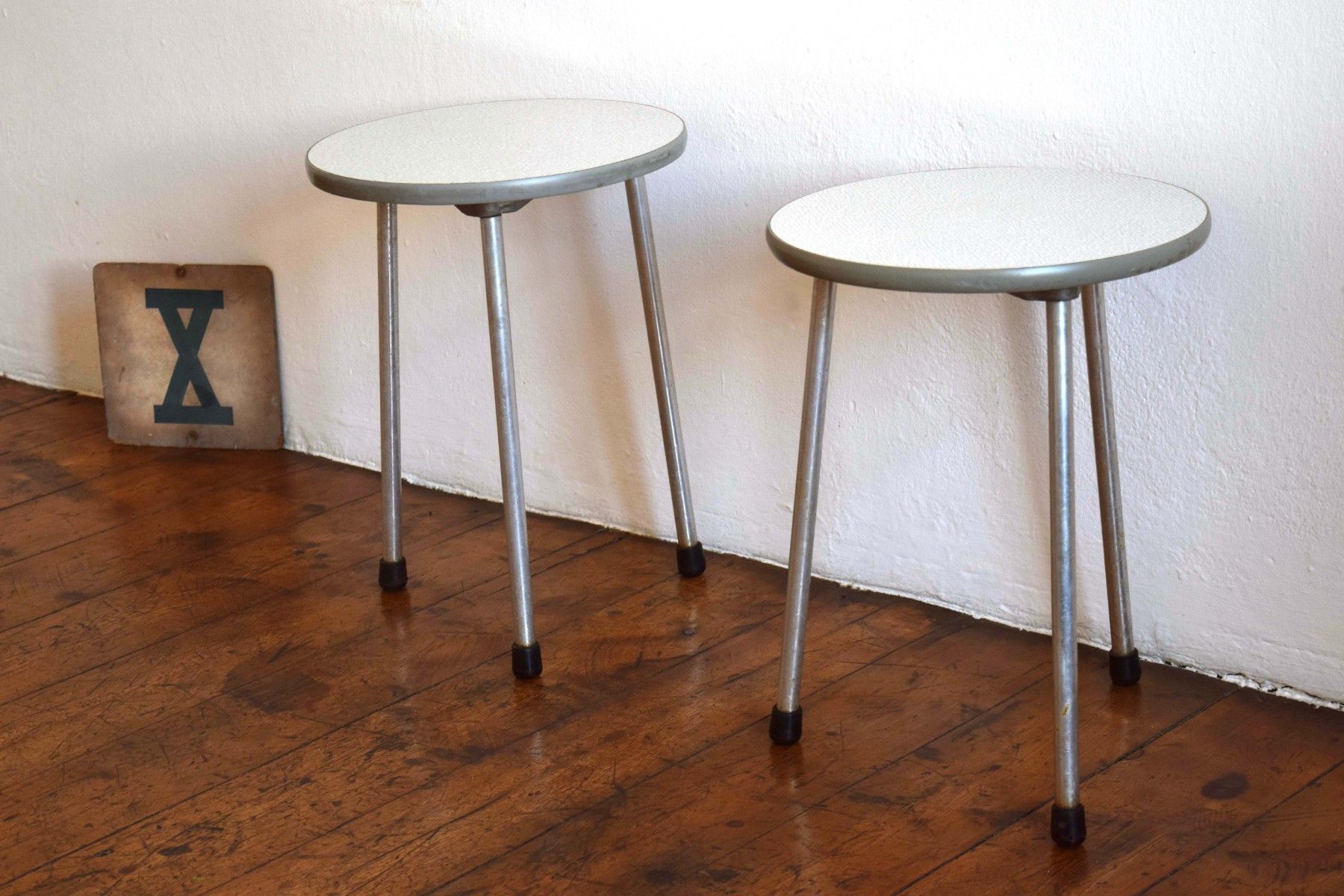 2er Set Hocker Rund Antik Alt Vintage Resopal Vintage DDR Metall 70er Mid Century