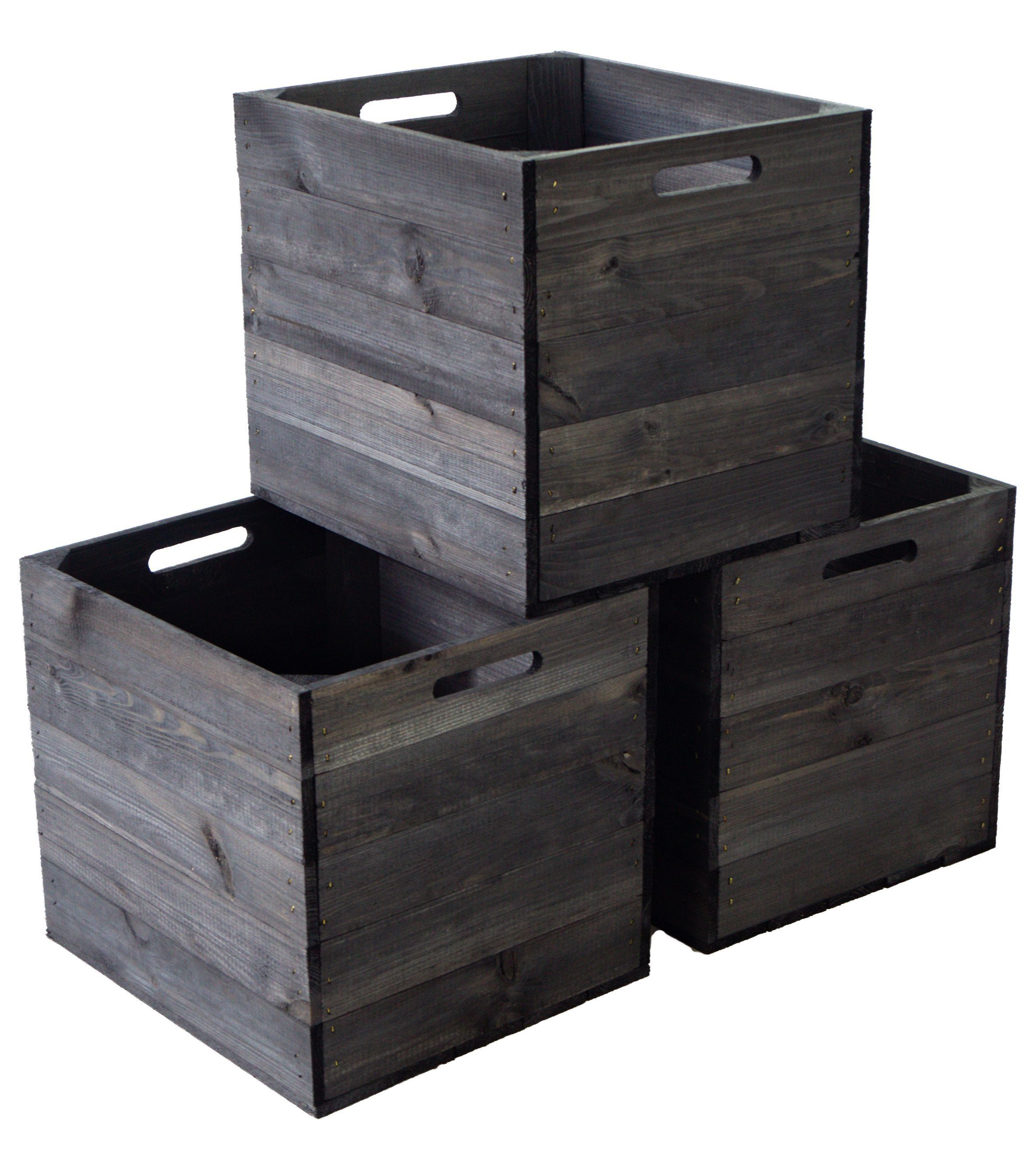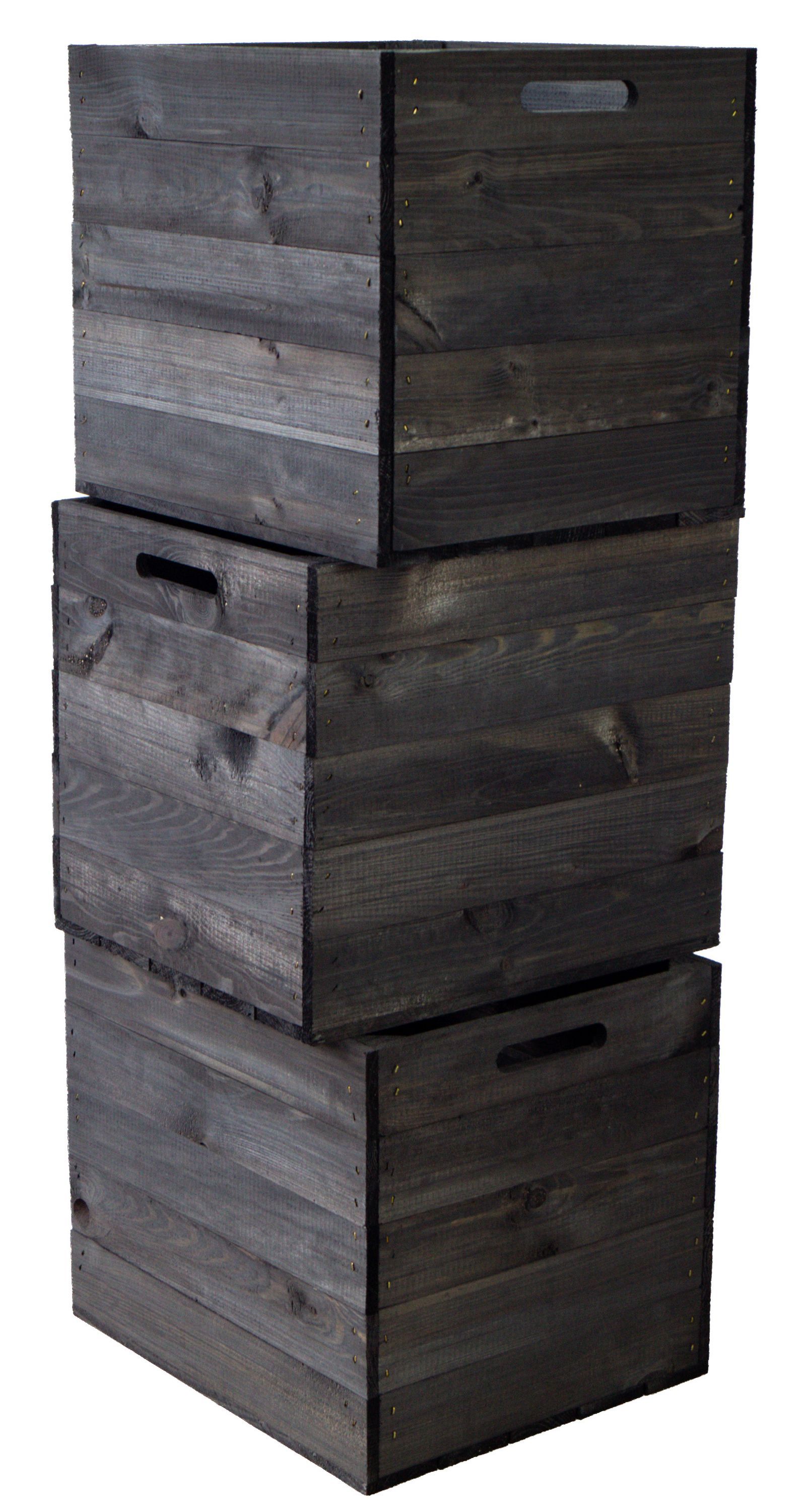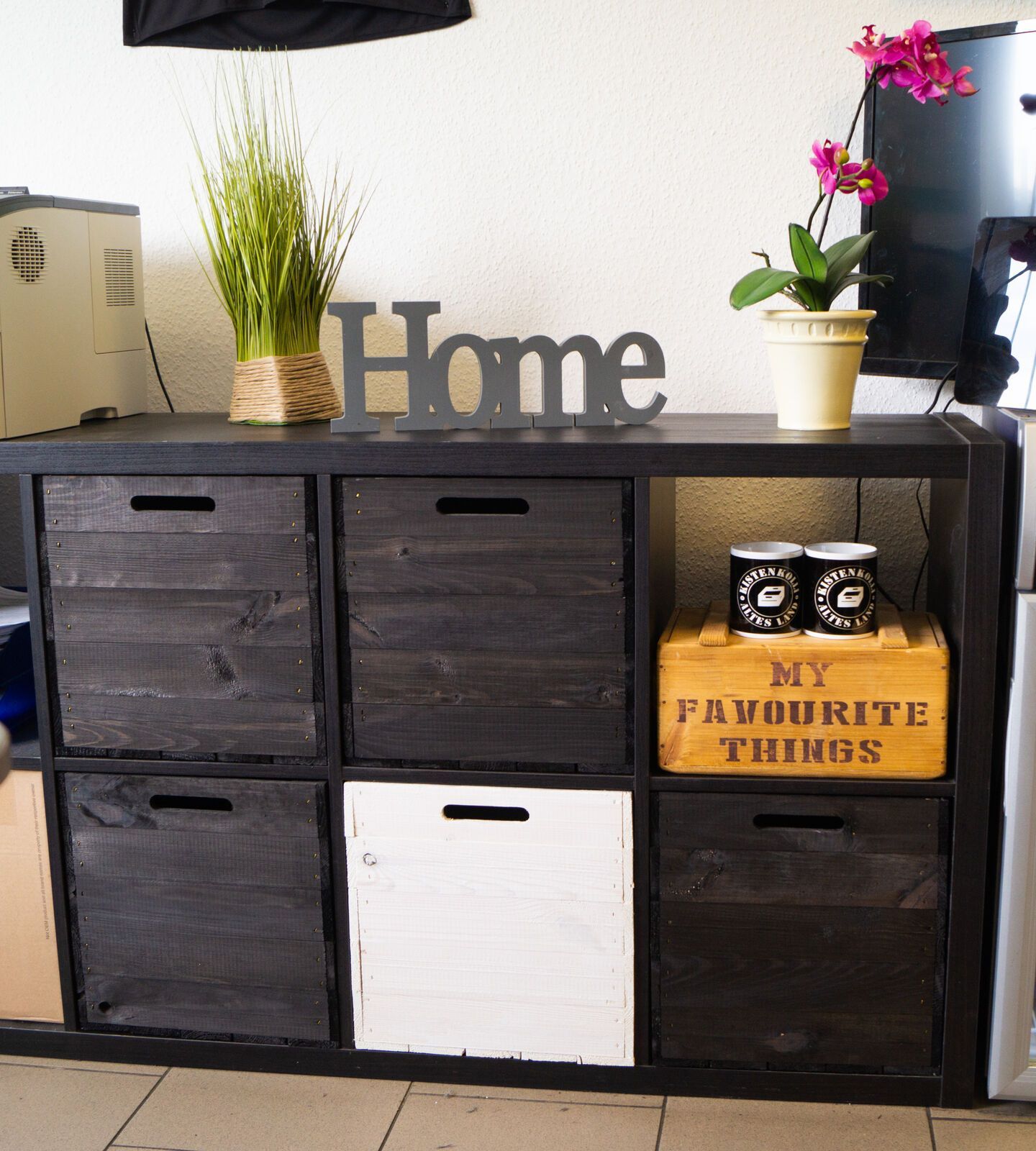2er set Holzkiste schwarz lasiert passend für Kallax und Expeditregale Regaleinsatz