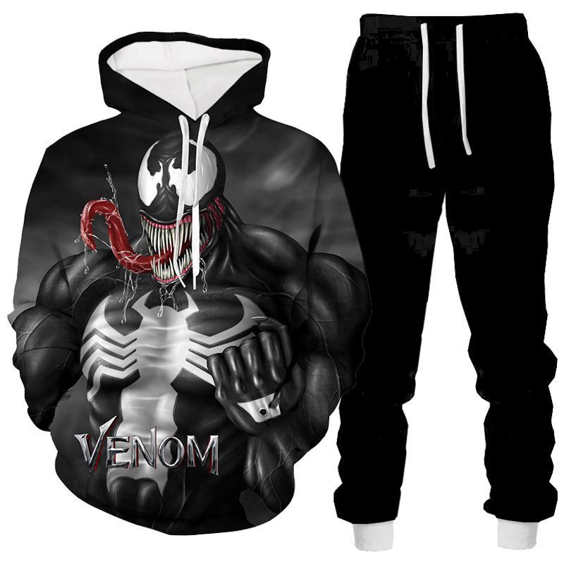 2er set Hoodie Jogginghose Set Superheld Venom Druck Pullover Herren Sweatshirt Anzug