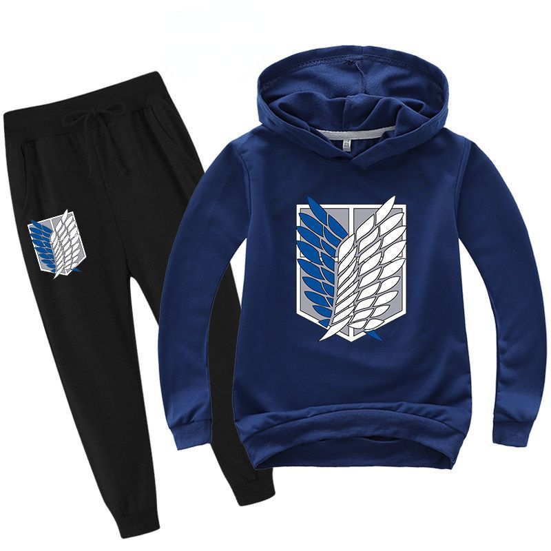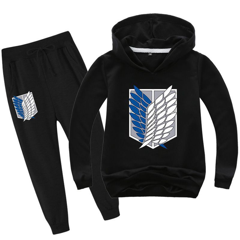 2er Set Junge Anime Attack on Titan Hoodie Anzug Kinder Pullover mit Hose