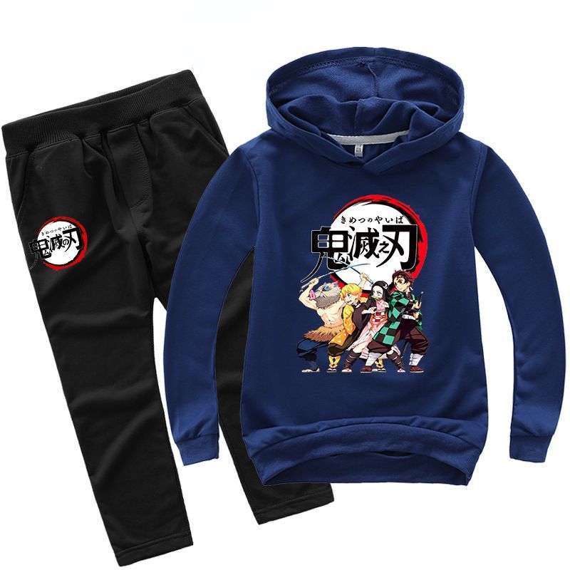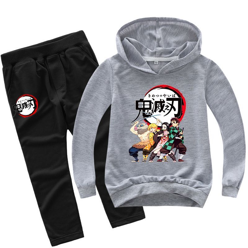 2er Set Junge Demon Slayer Hoody Anzug Kinder Pullover Sweatshirts mit Hose