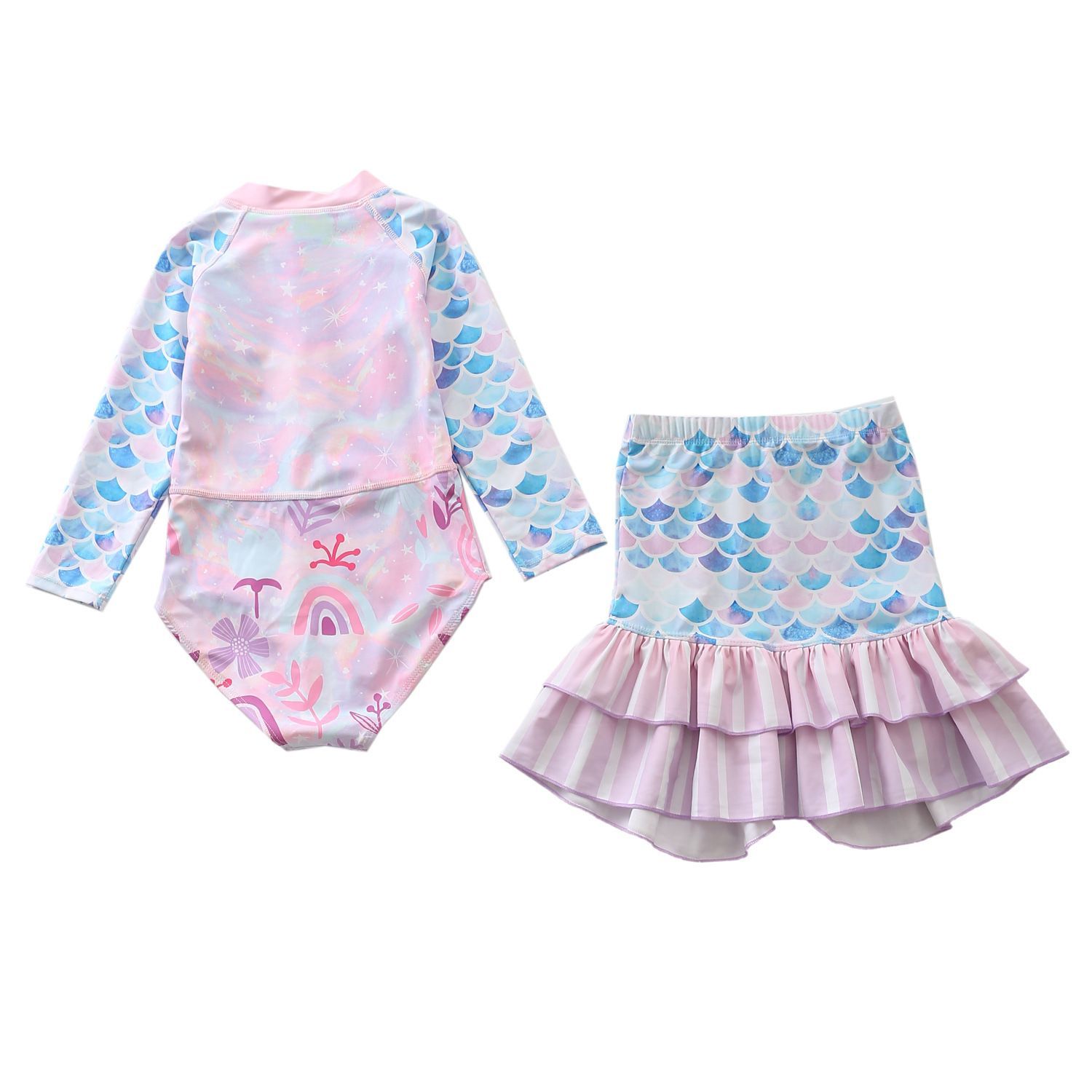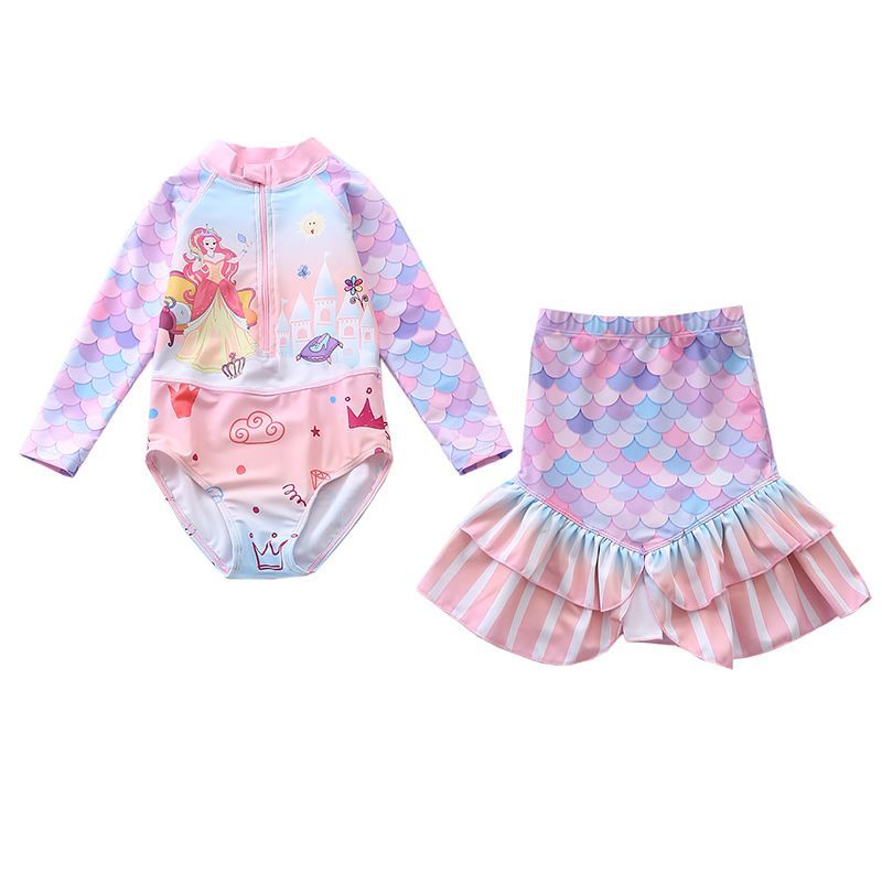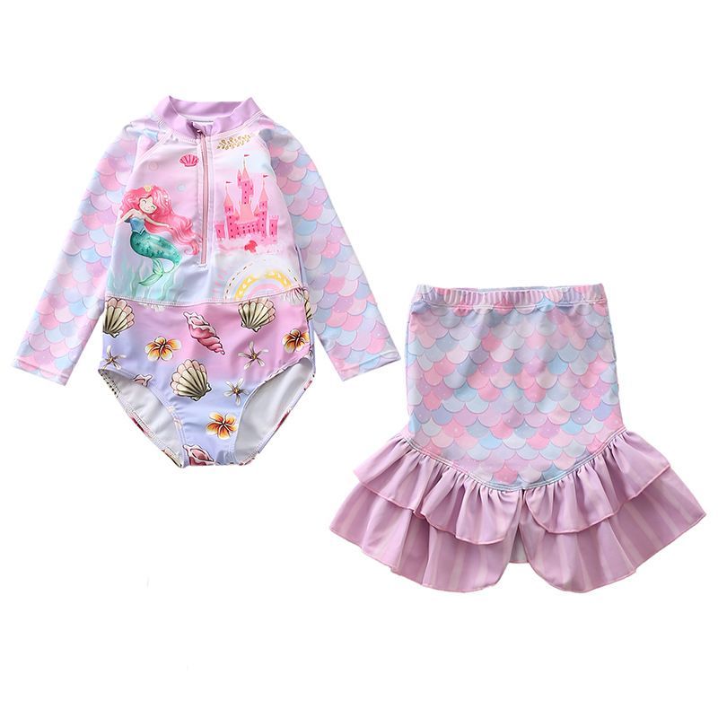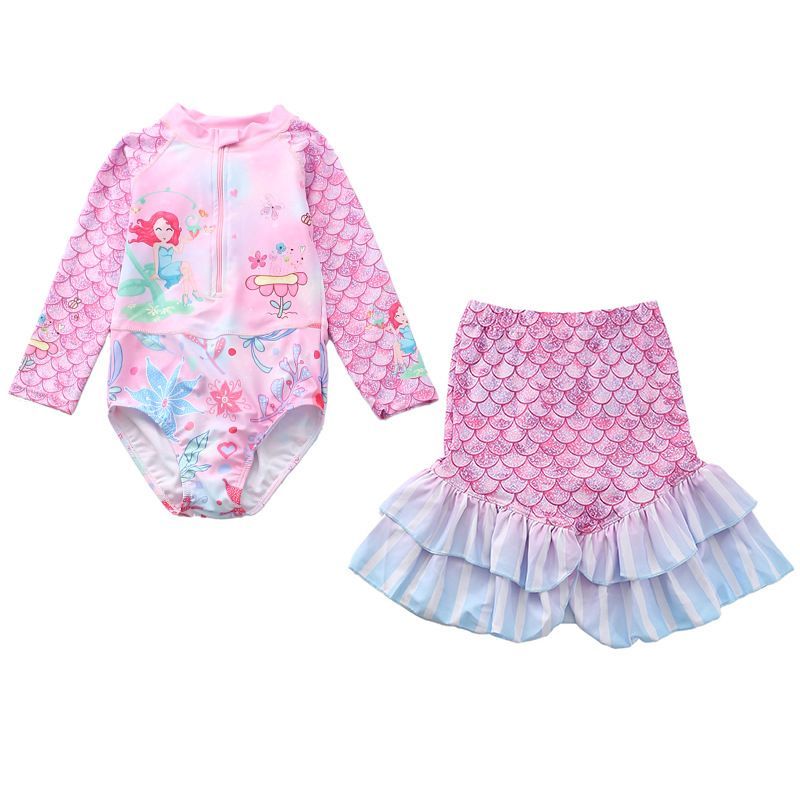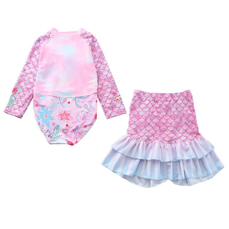 2er set Kinder Meerjungfrau Badeanzug Schwimmrock Mädchen One-piece Bathing Suit