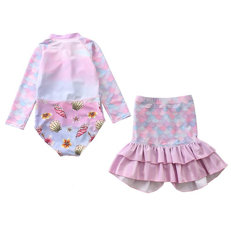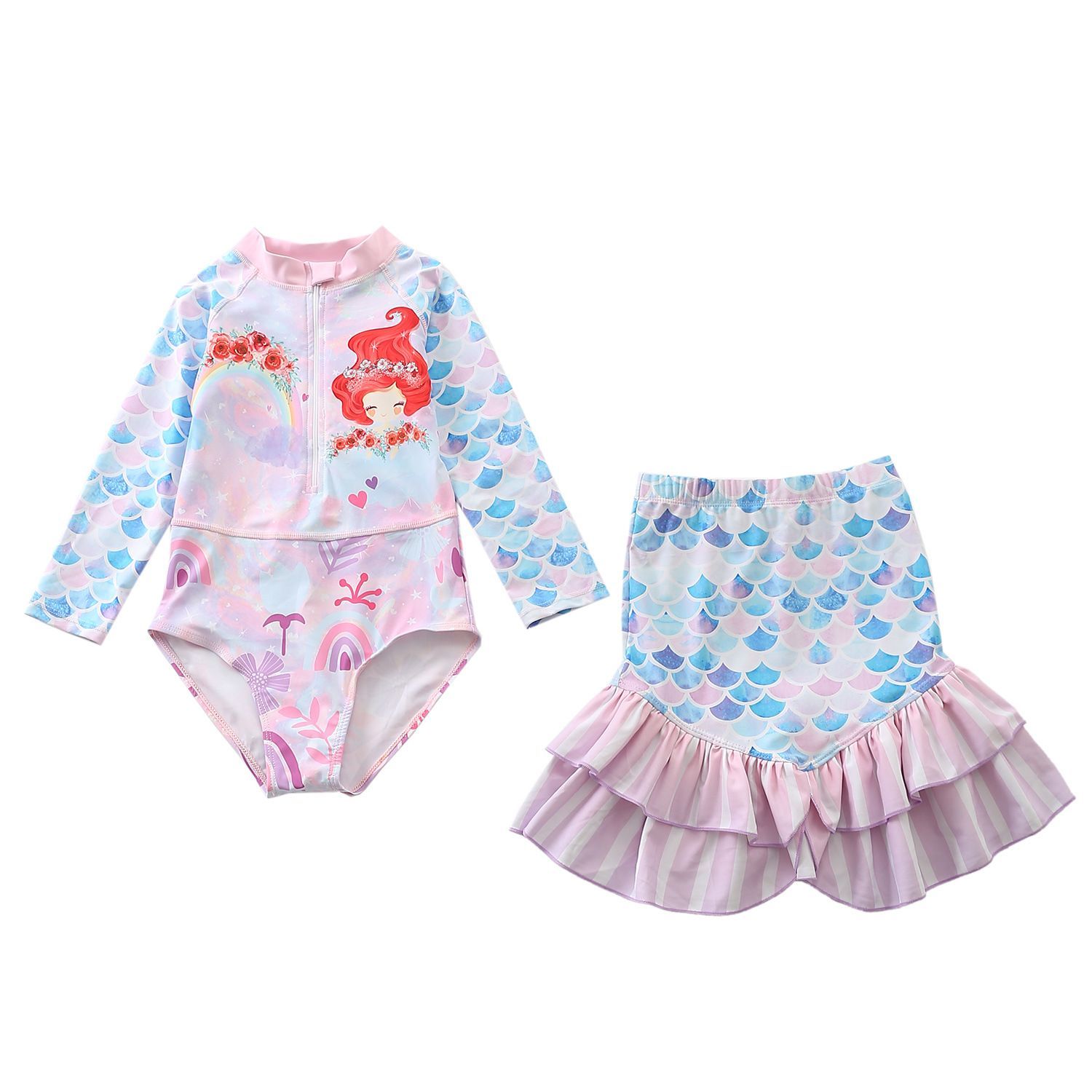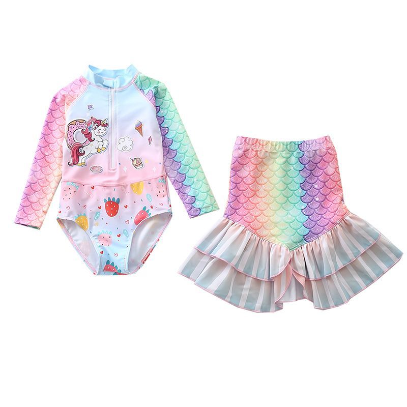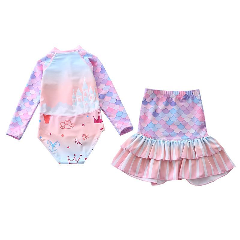 2er set Kinder Meerjungfrau Badeanzug Schwimmrock Mädchen One-piece Bathing Suit