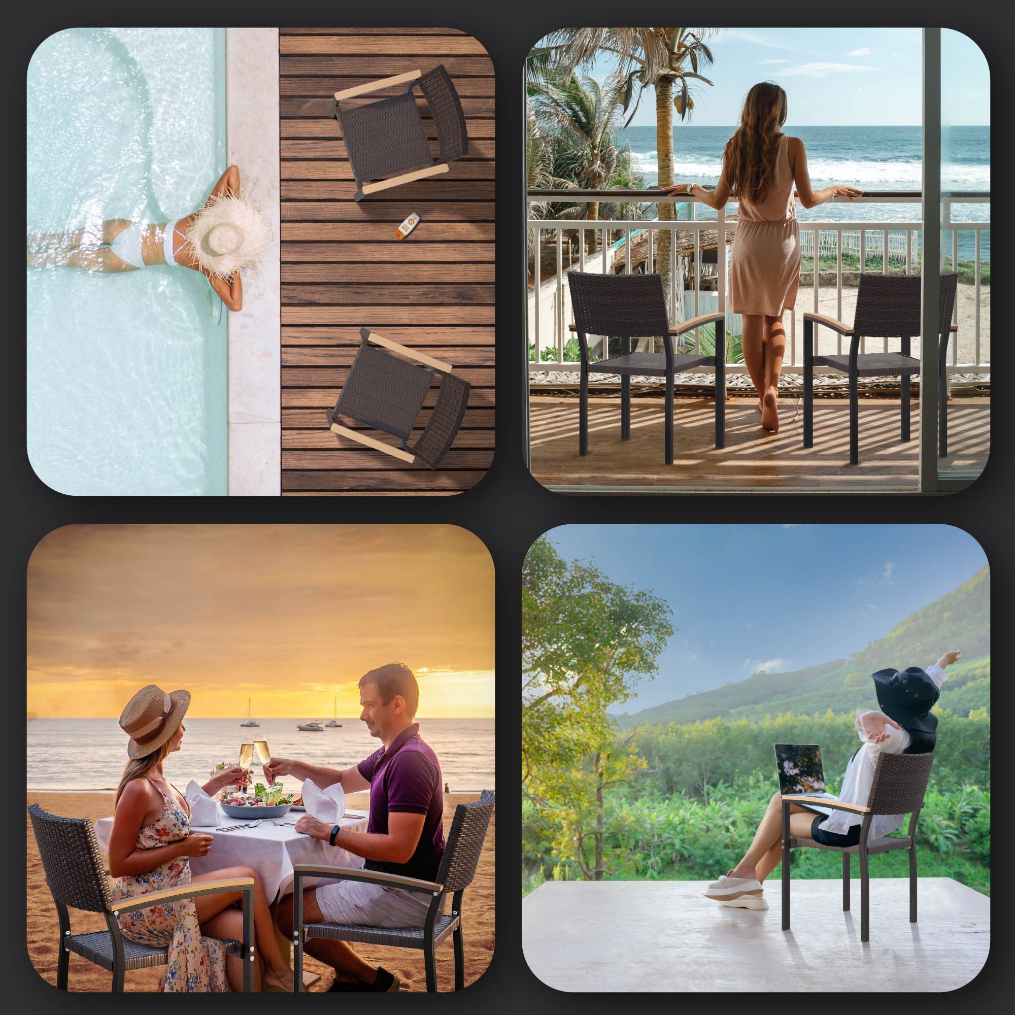 2er-Set KORFU | Bistro Rattanstuhl | Braun | Rattan | Stapelbar | Terrassen Rattanst
