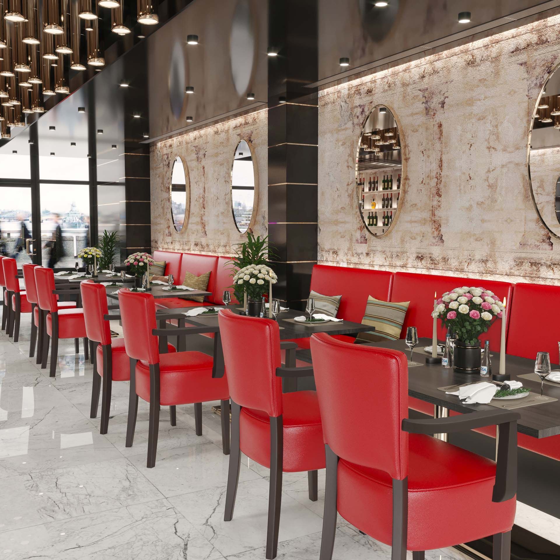 2er-Set LUCA ARM | Bistrostuhl | Rot | Leder | Gastrostühle, Bistrostühle Gepolstert