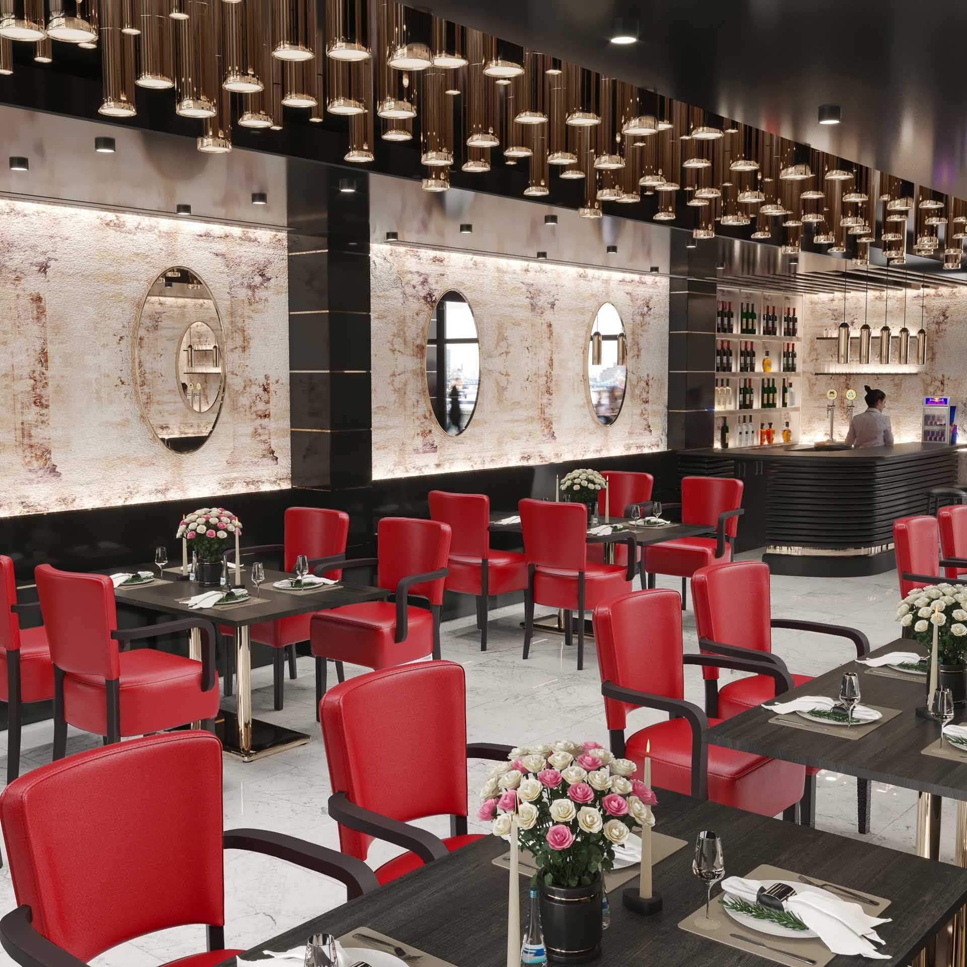 2er-Set LUCA ARM | Bistrostuhl | Rot | Leder | Gastrostühle, Bistrostühle Gepolstert