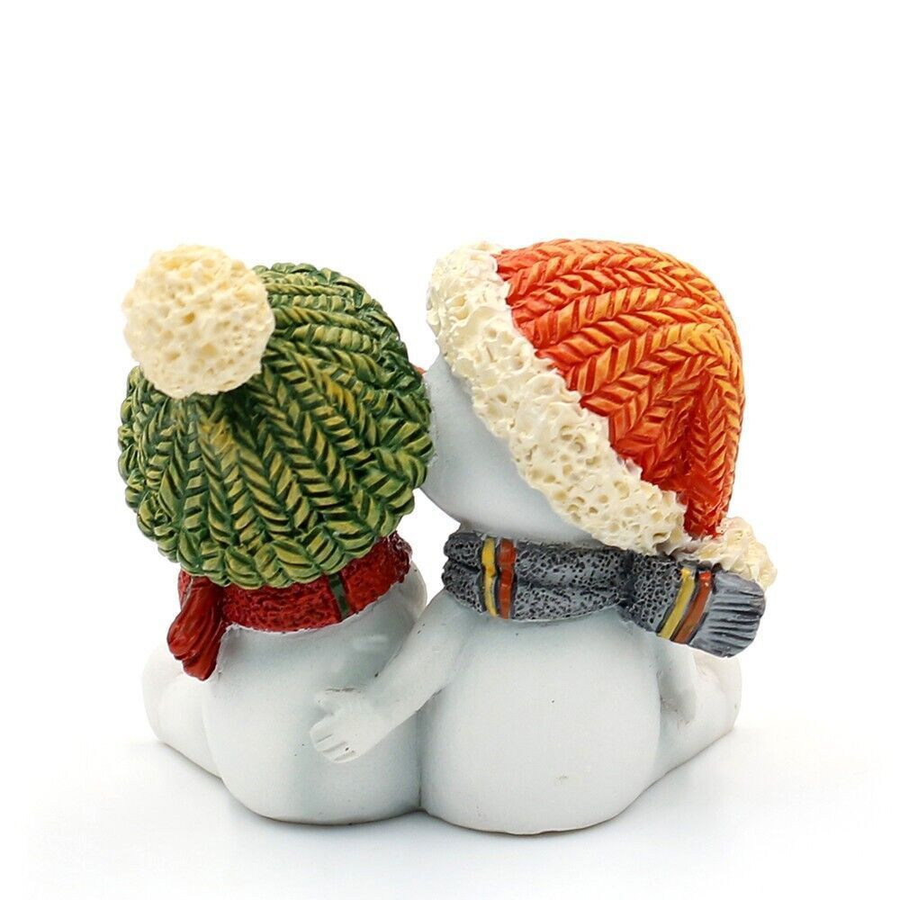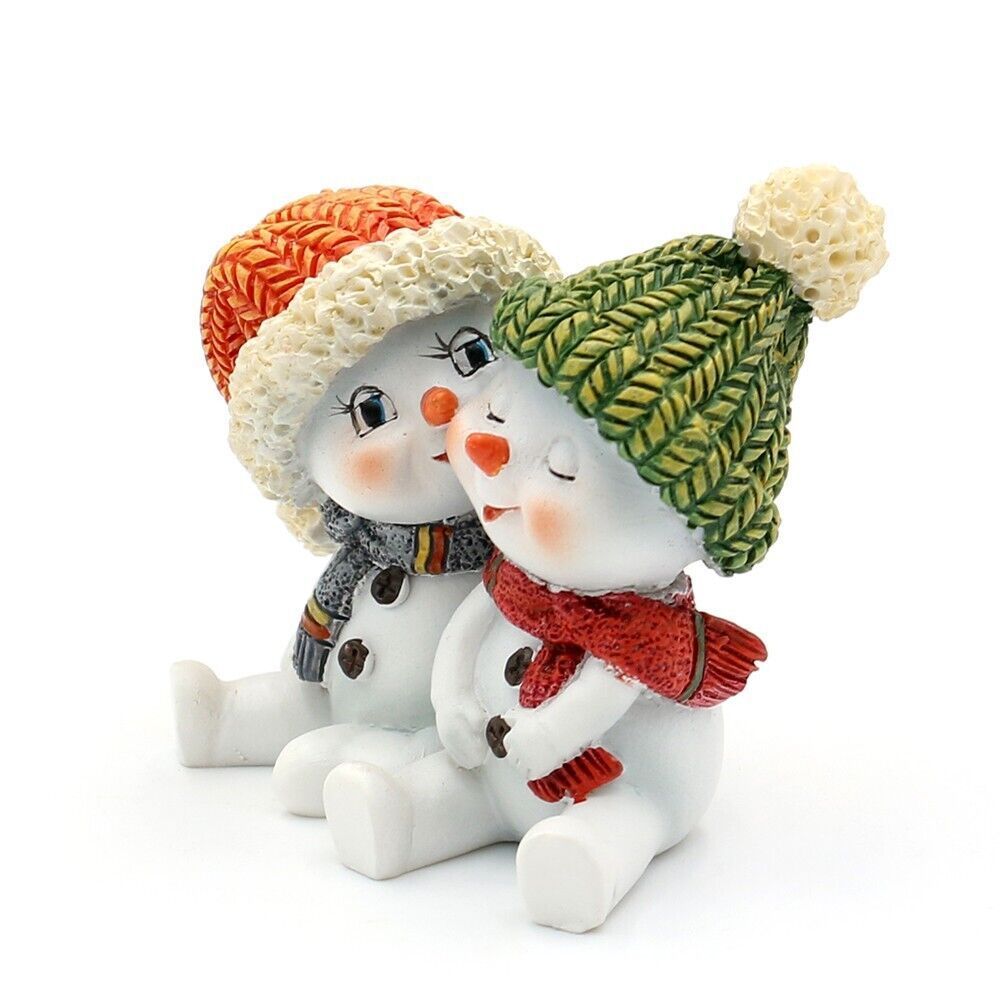 2er-SET Lustige Schneekinder-paare Kuscheln Küssen mit Mütze Schneemann Figur