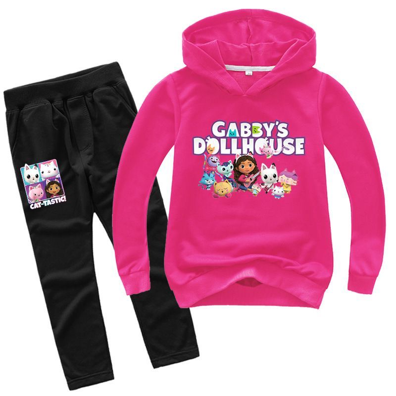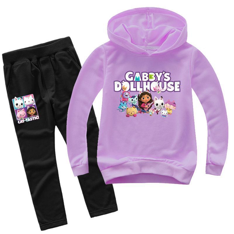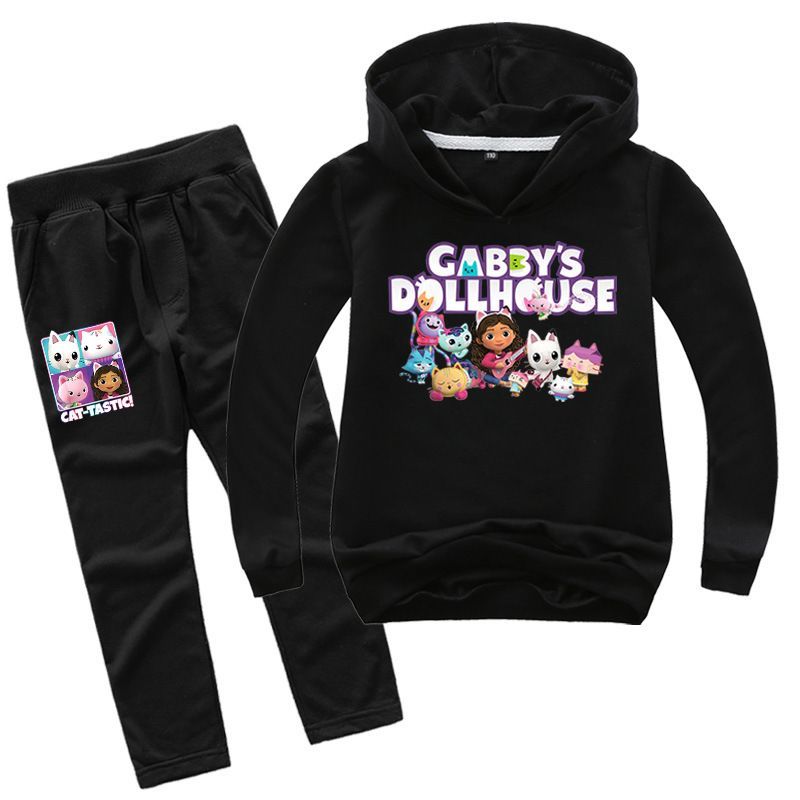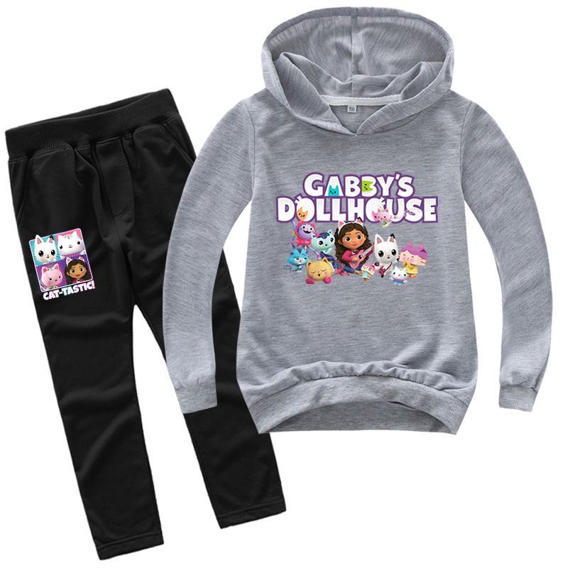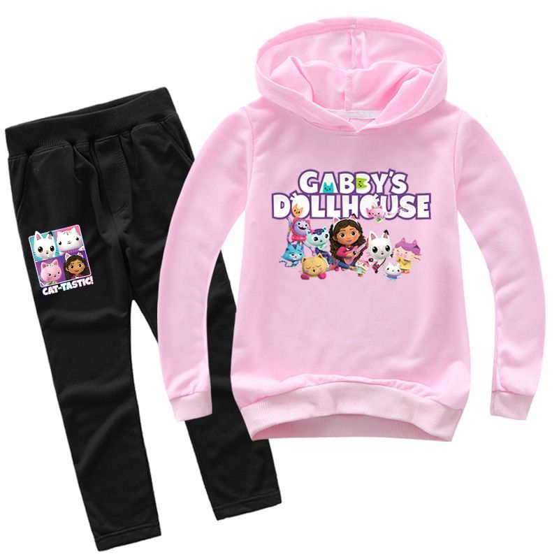 2er Set Mädchen Anime Gabby's Dollhouse Hoodie Anzug Kinder Pullover mit Hose