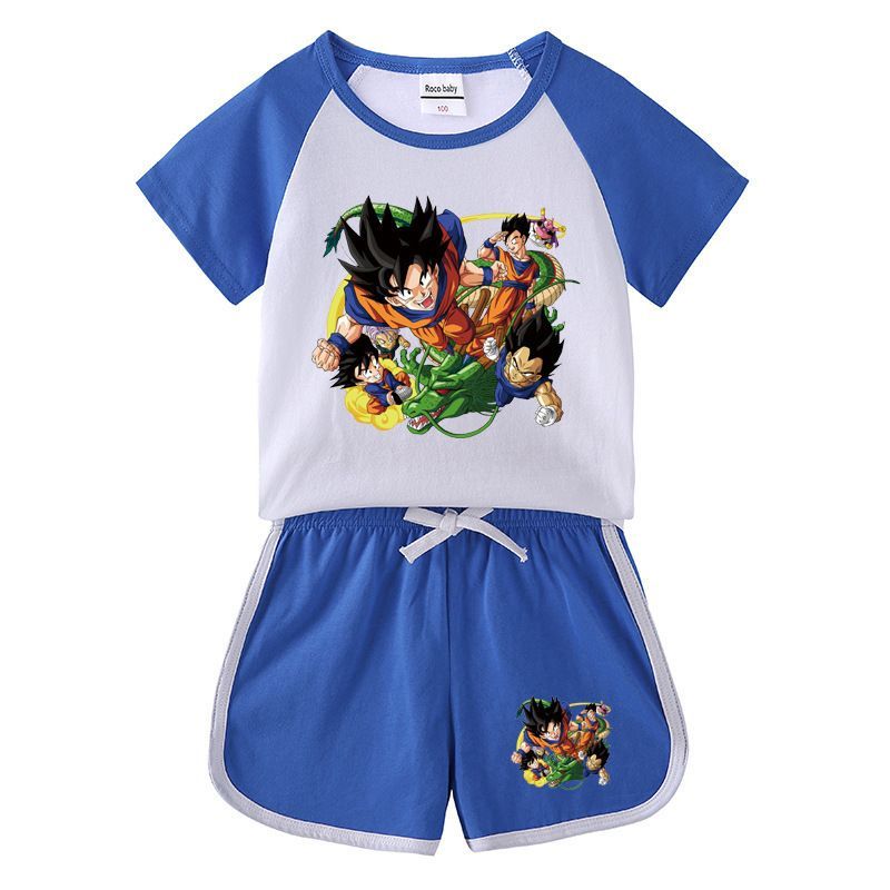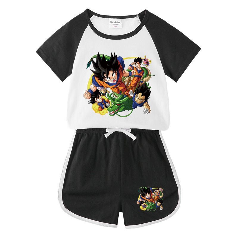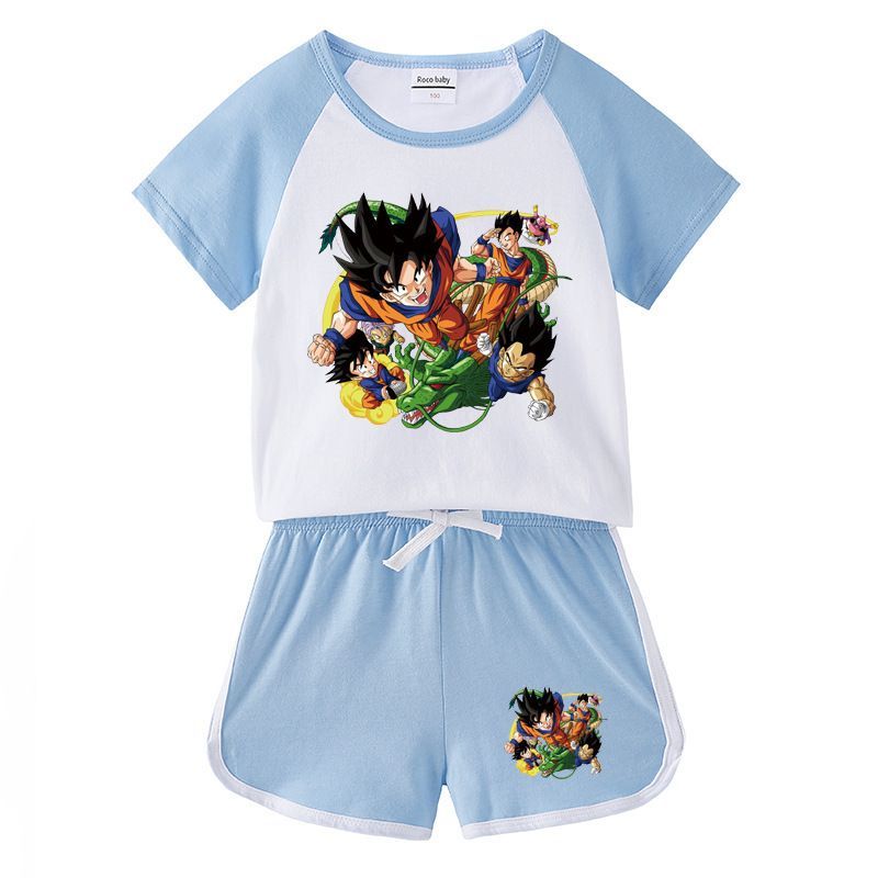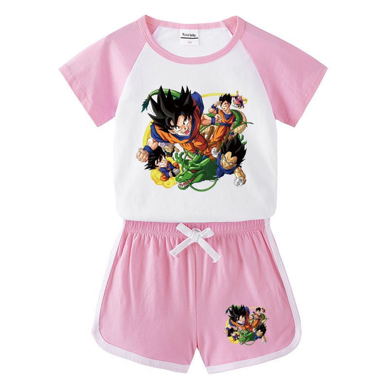 2er Set Mädchen Anzug Dragon Ball Son Goku T-shirt Kurzhose Kinder Sportanzug