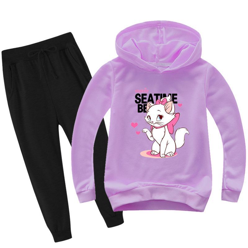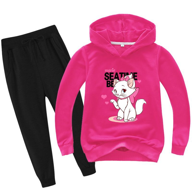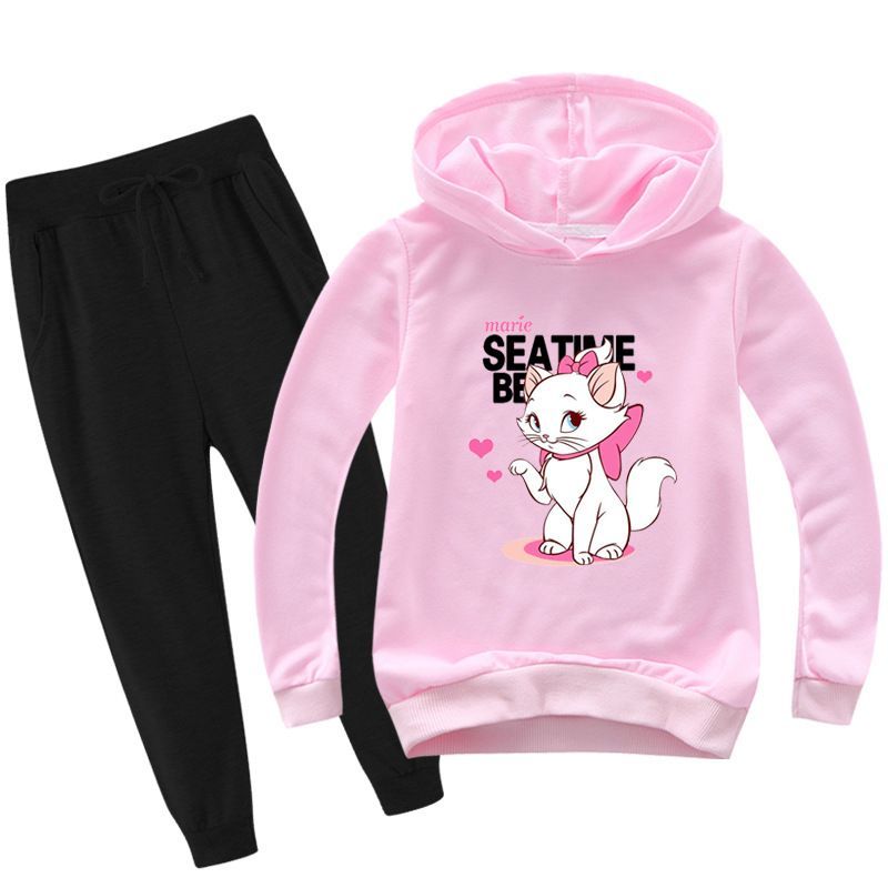 2er Set Mädchen Disney Marie Hoodie Anzug Kinder Pullover Sweatshirts mit Hose