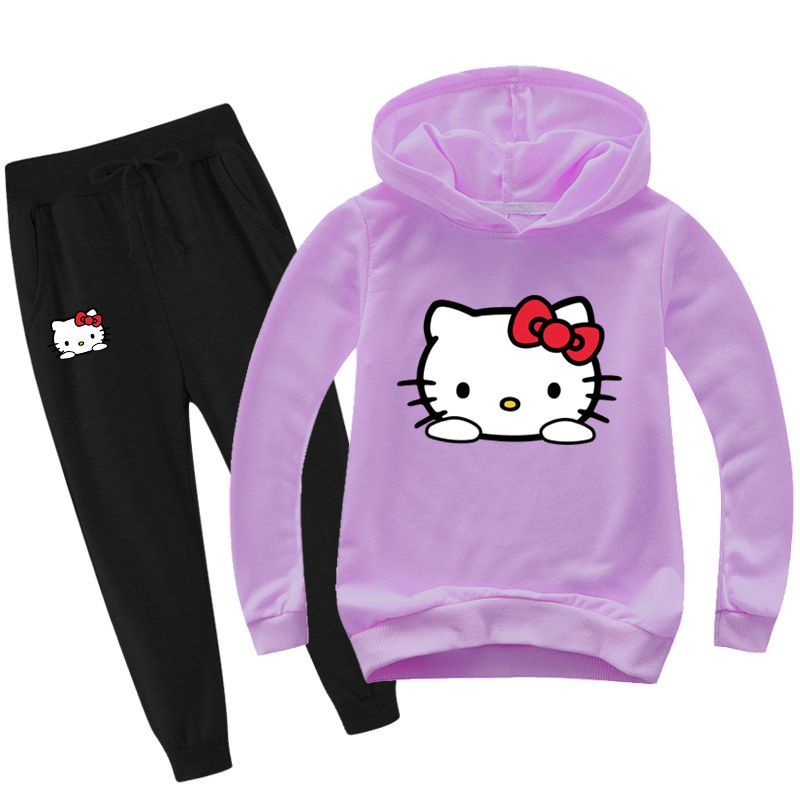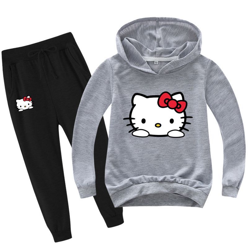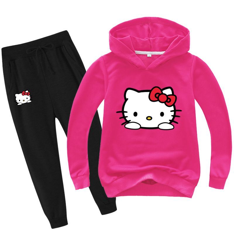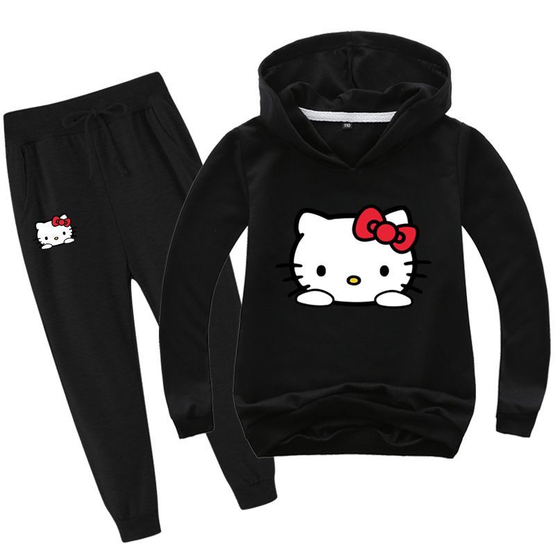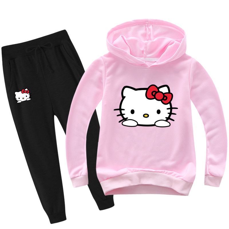 2er Set Mädchen Hello Kitty Hoodie Anzug Kinder Pullover Sweatshirts mit Hose
