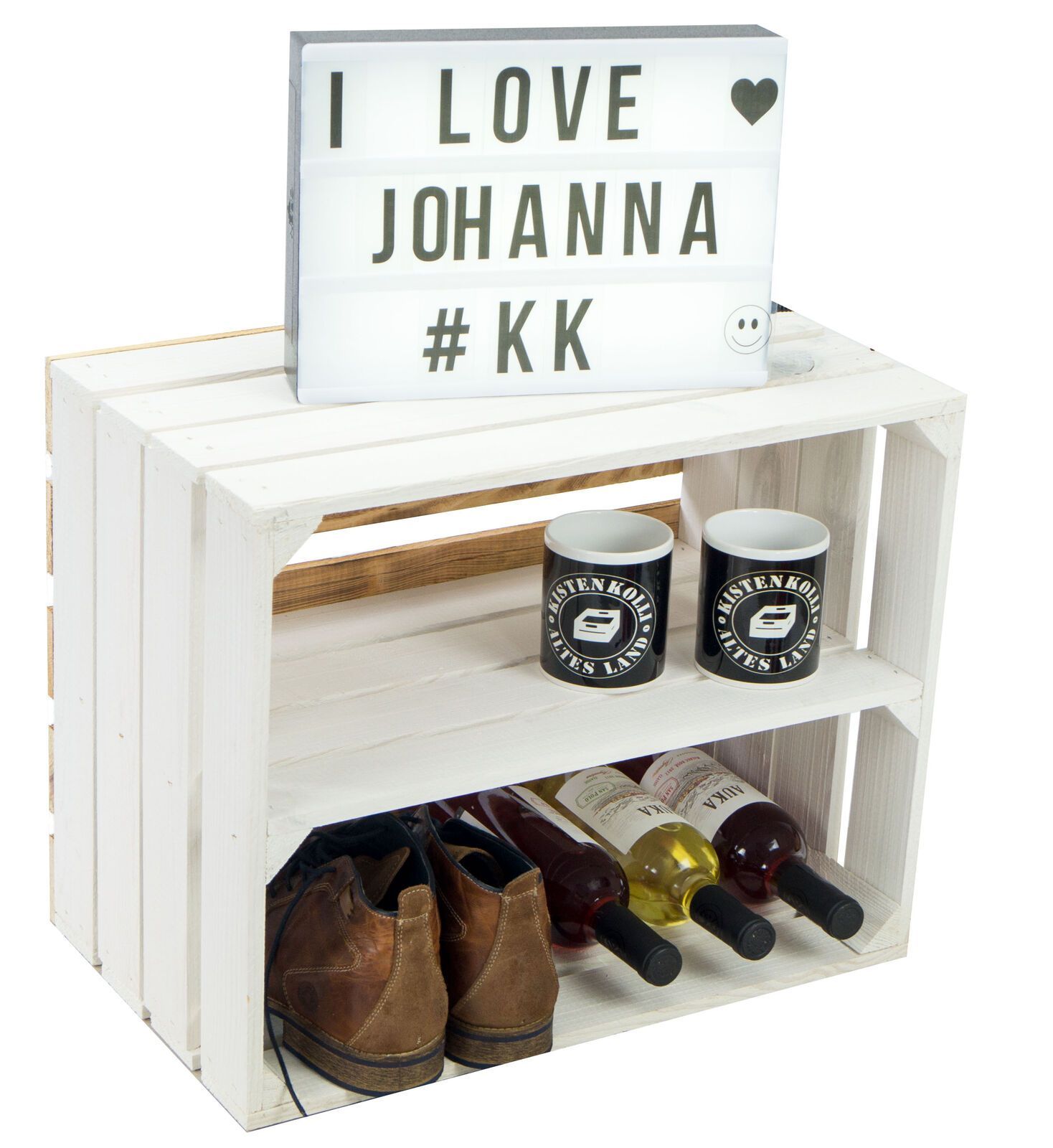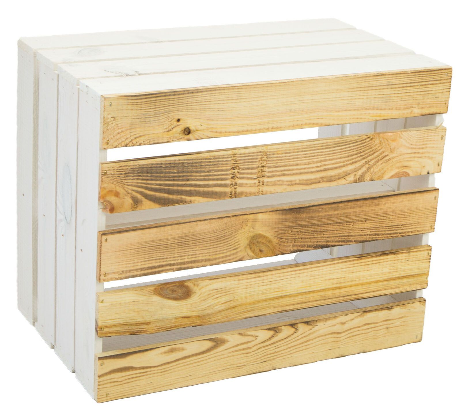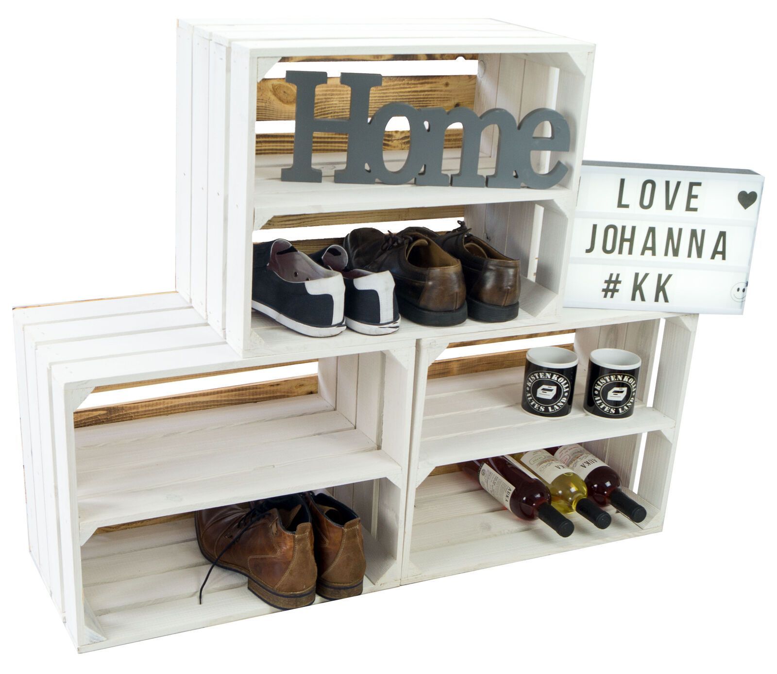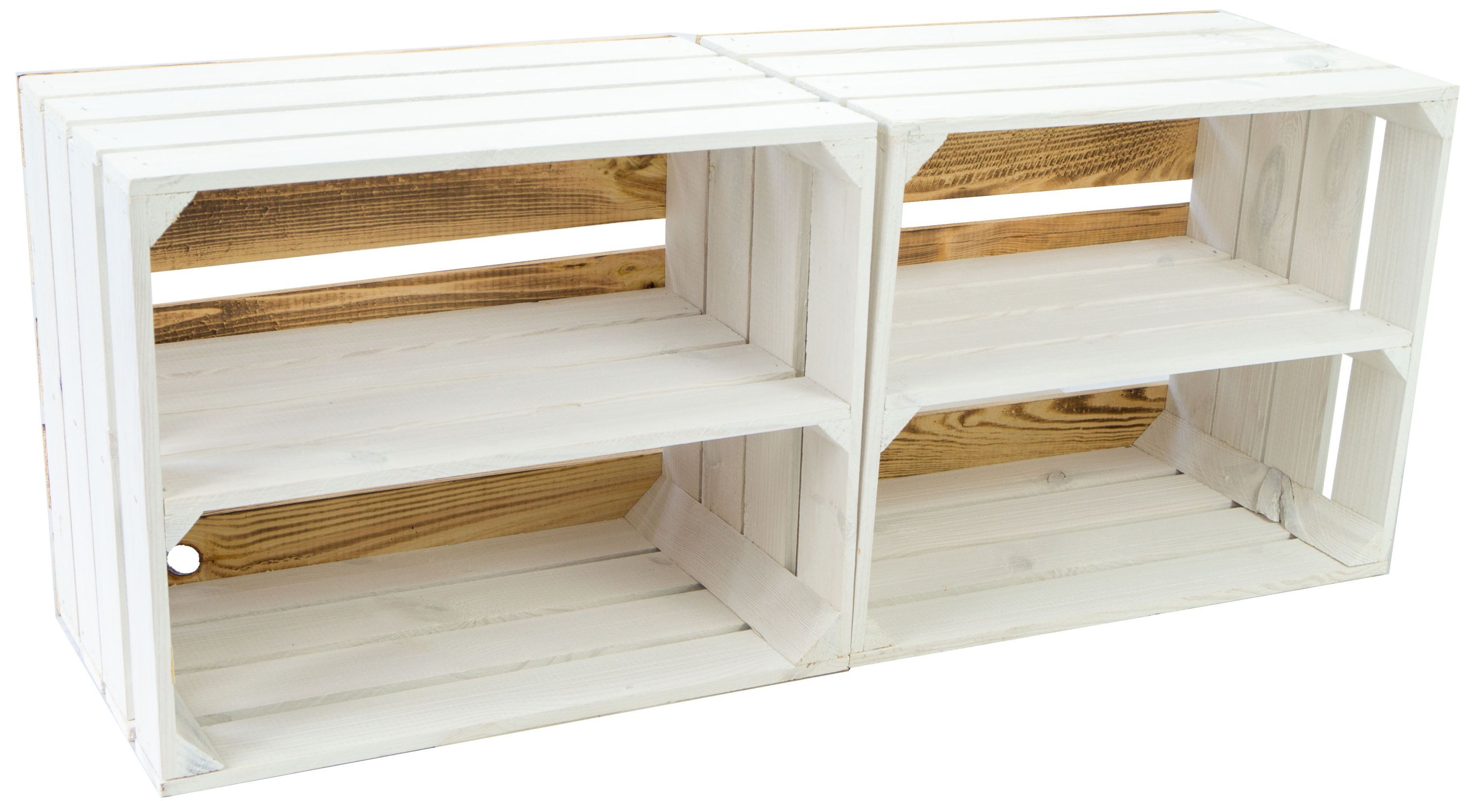 2er set Obstkiste "Johanna" weiß mit geflammten Boden mit Mittelbrett weiß LÄNGS