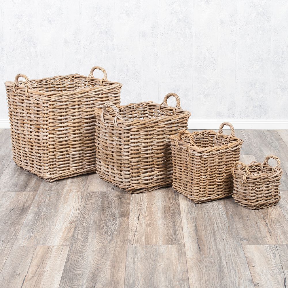 2er Set Rattankorb BAKUL eckig Grey ca.20cm Aufbewahrungskorb Dekokorb Korb
