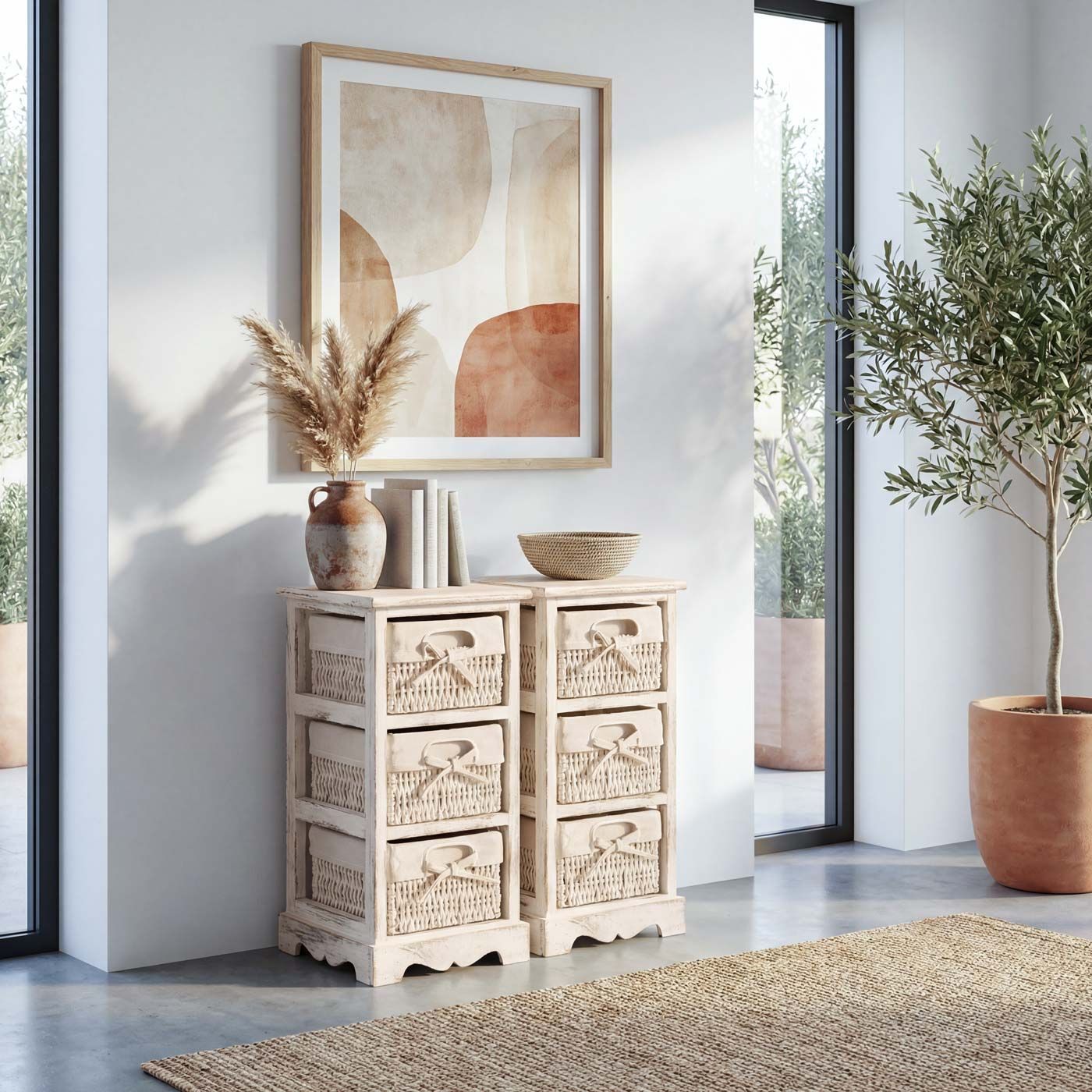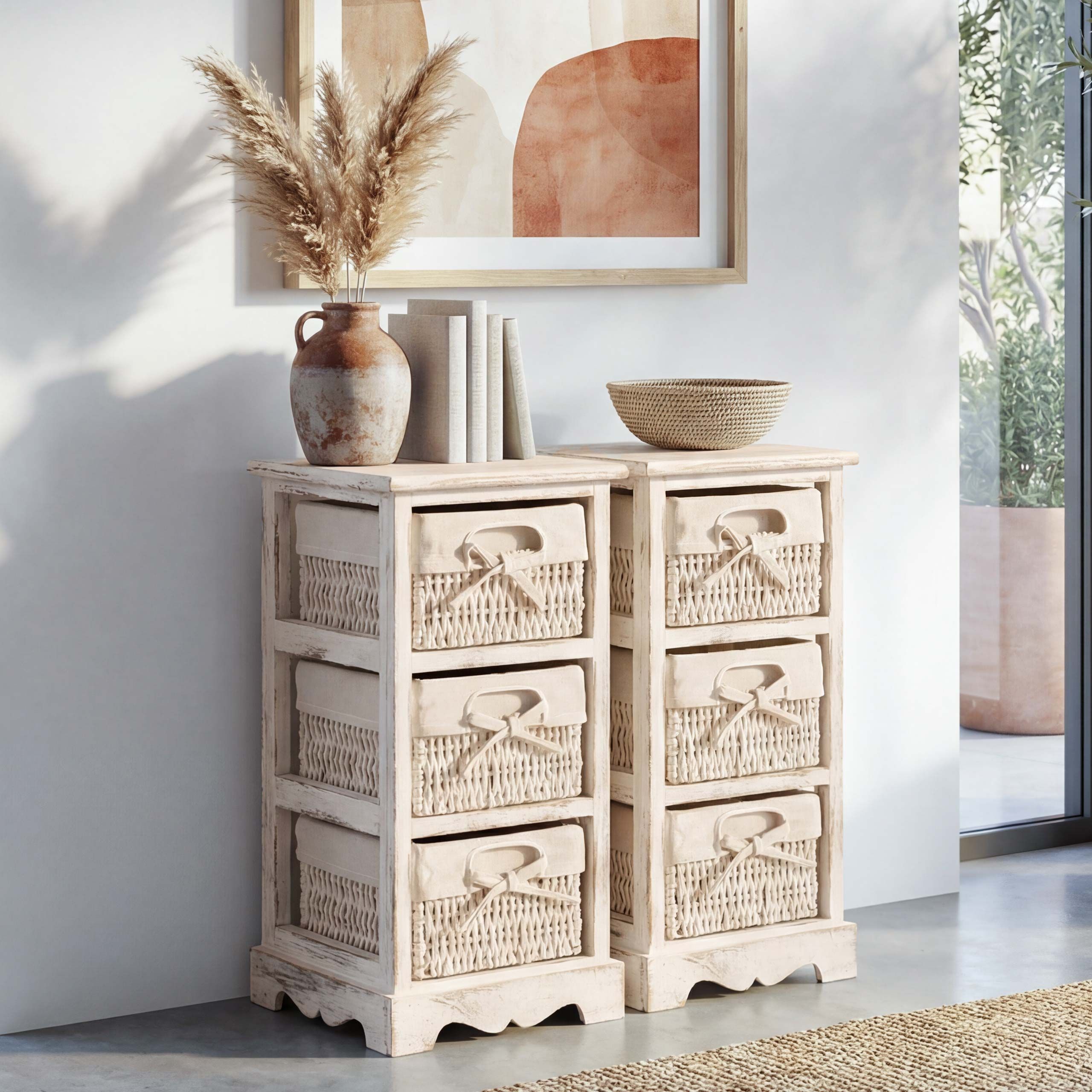 Mendler 2er-Set Regal mit 3 Korbschubladen, Shabby-Look, Vintage