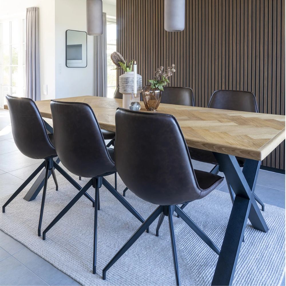 2er Set Retro-Drehstuhl CANNES vintage-braun Schalensitz schwarze Metallbeine
