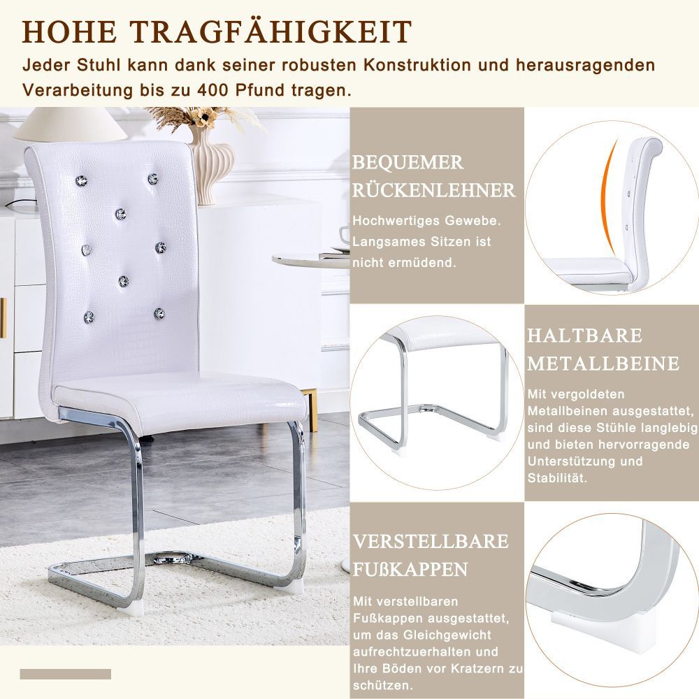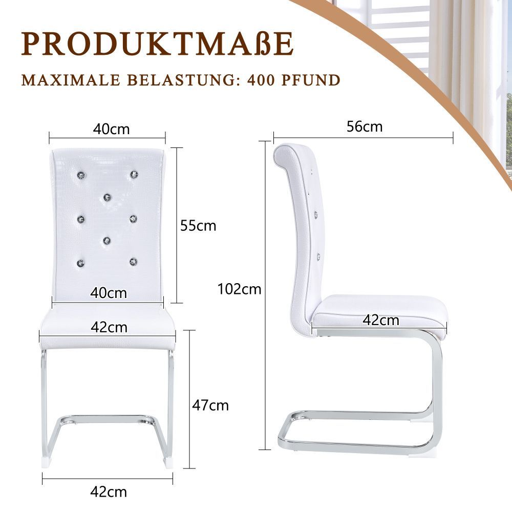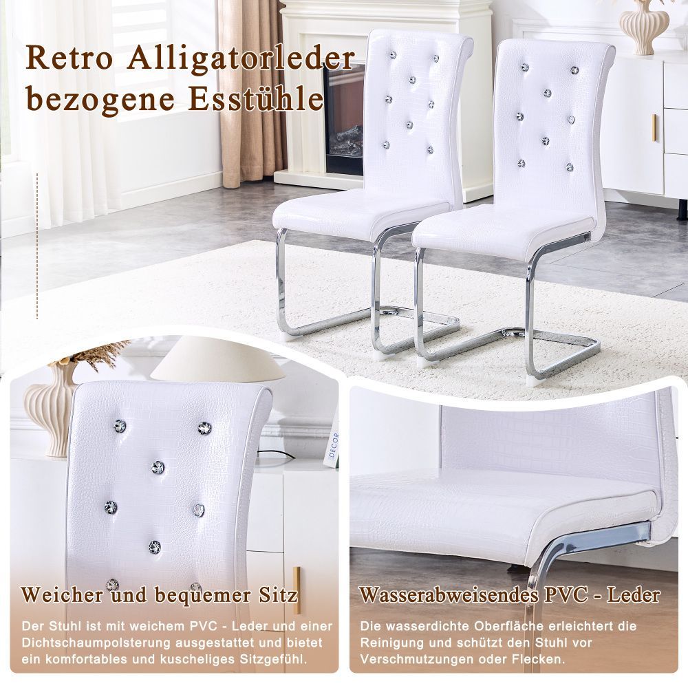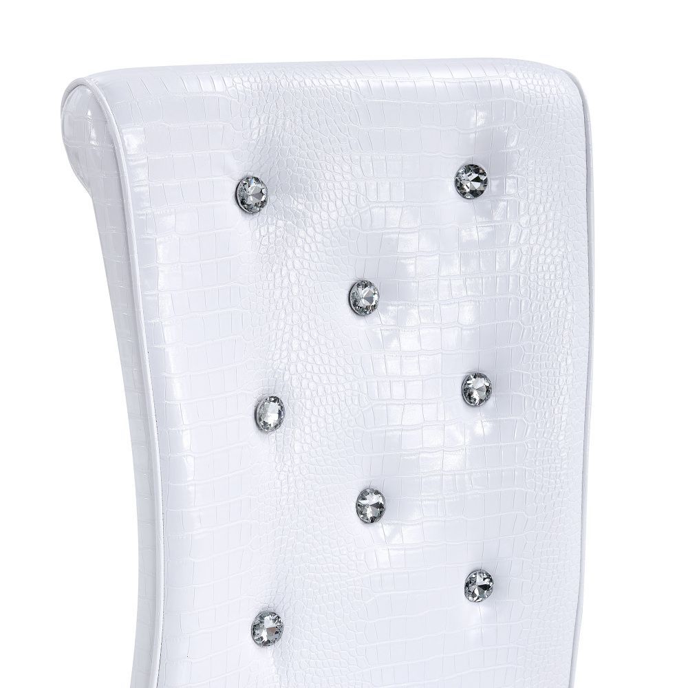2er Set Retro Polsterstühle Weiß PVC mit Kristallschnalle Metallbeine