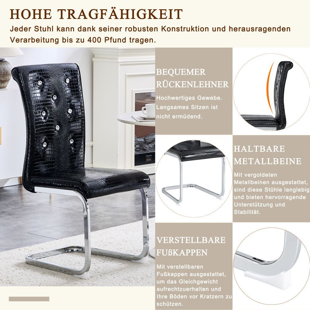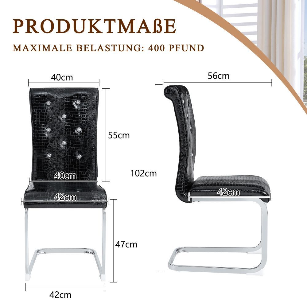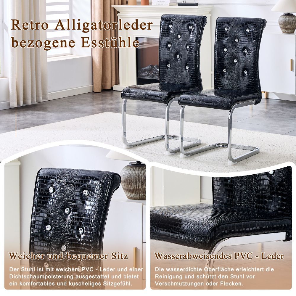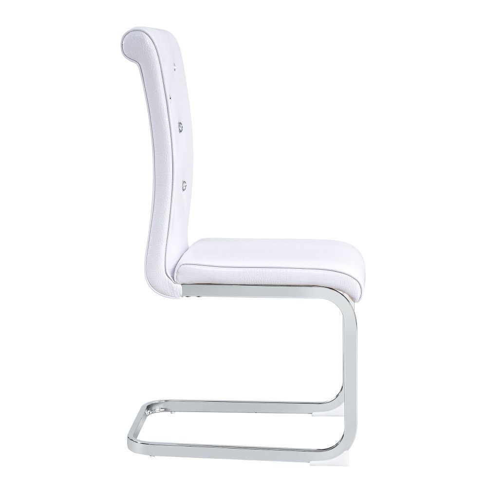 2er Set Retro Polsterstühle Weiß PVC mit Kristallschnalle Metallbeine