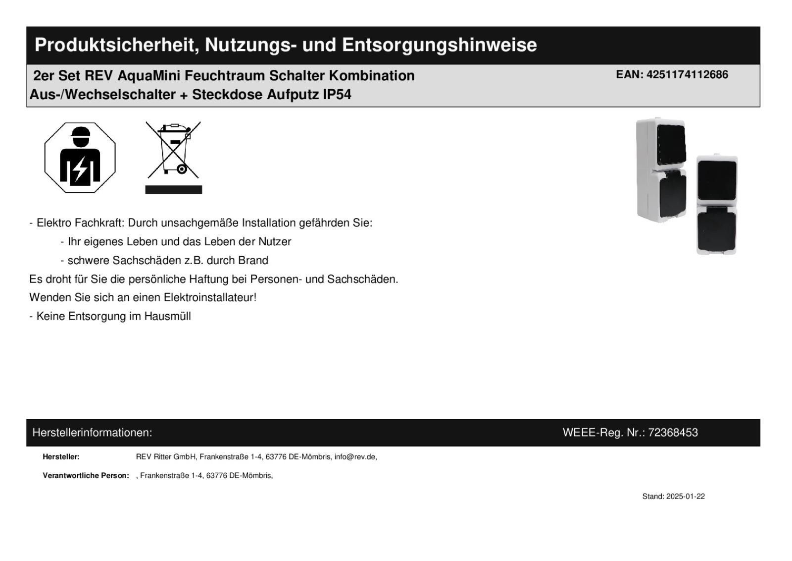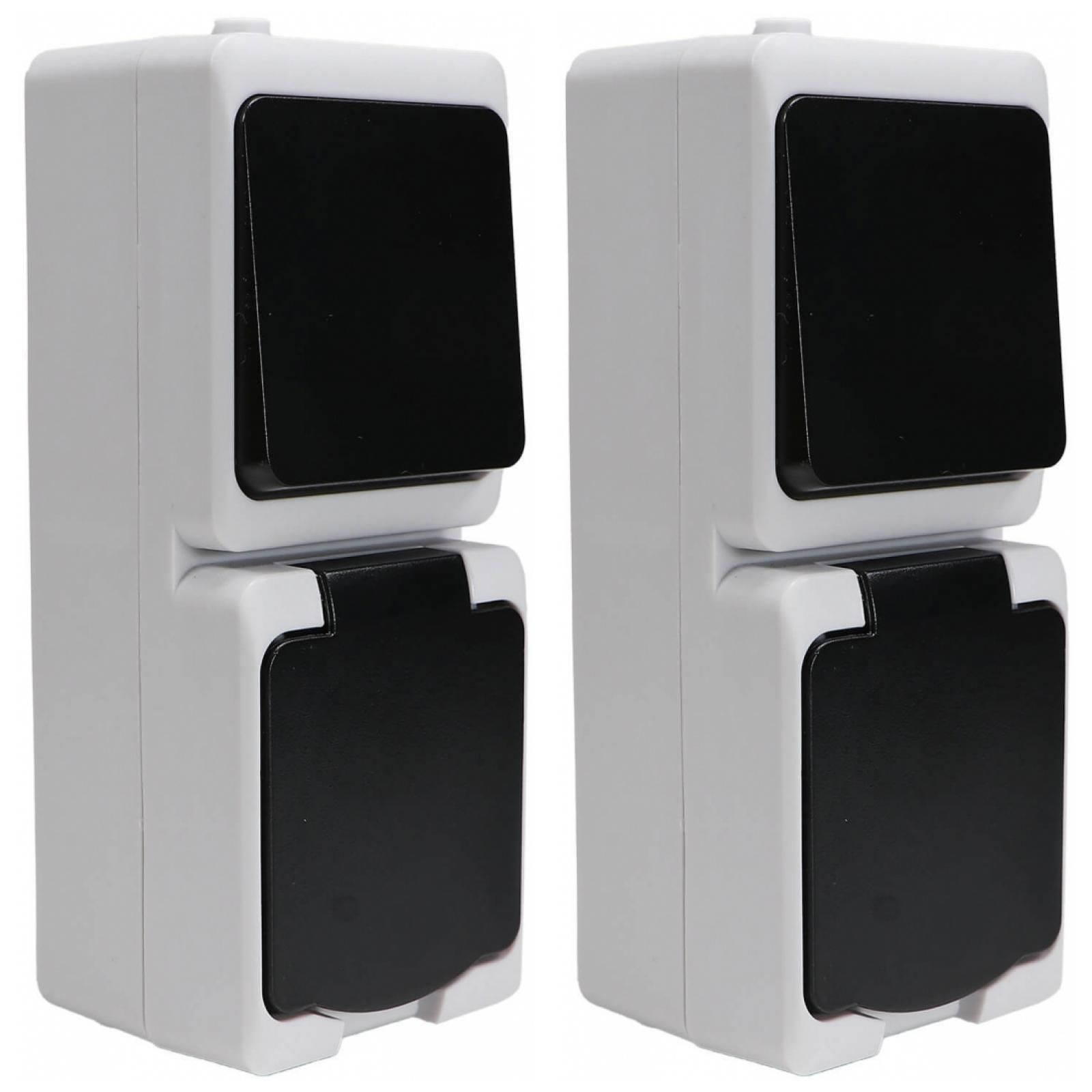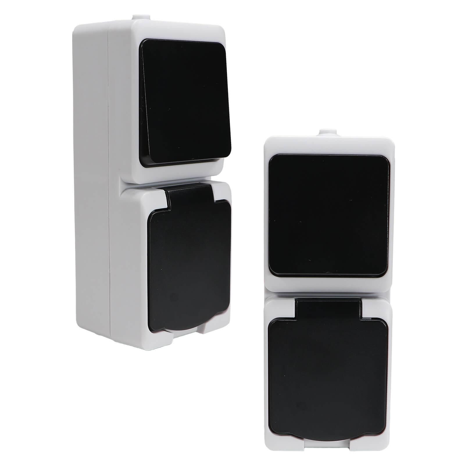 2er Set REV AquaMini Feuchtraum Kombination Schalter Steckdose IP54 mini Aufputz