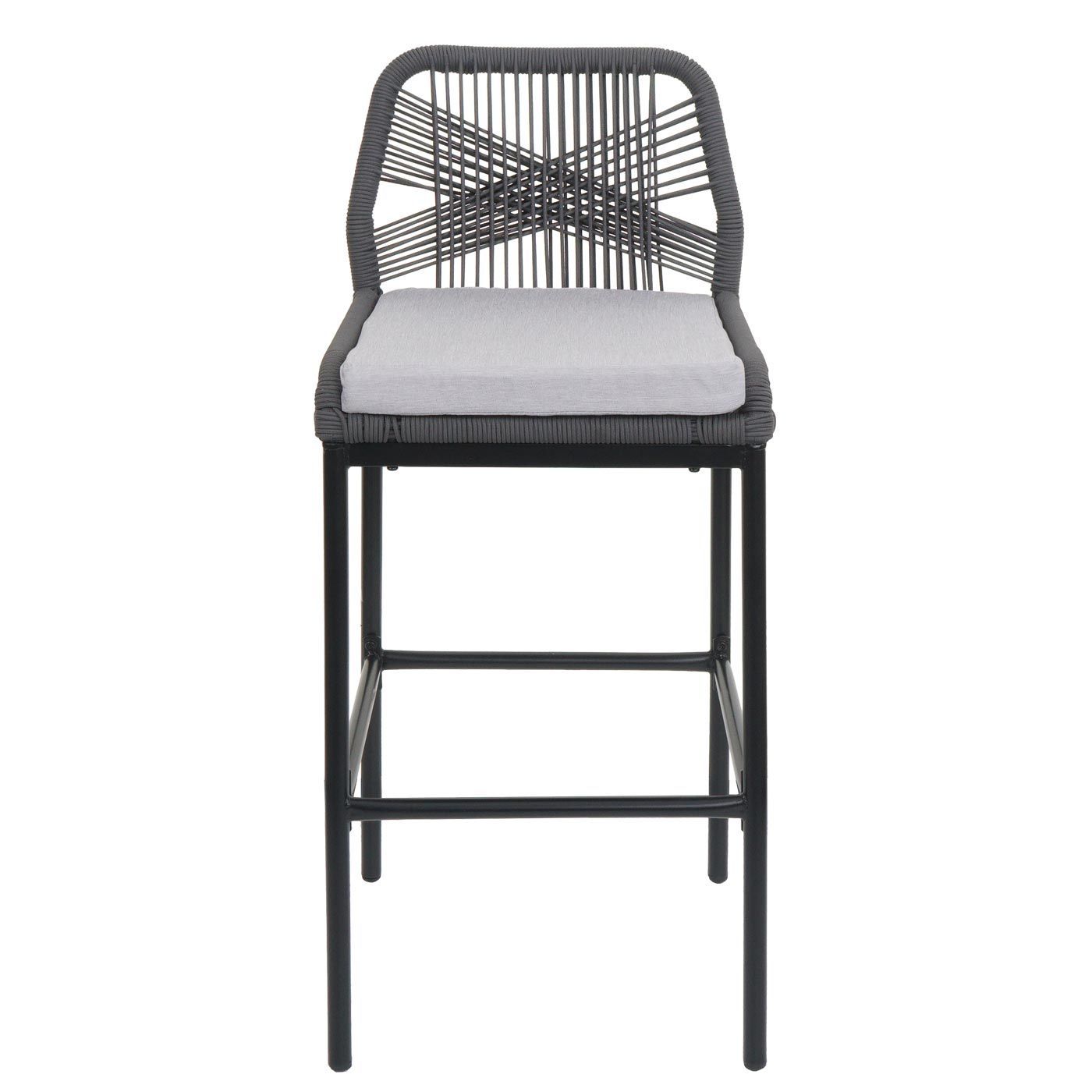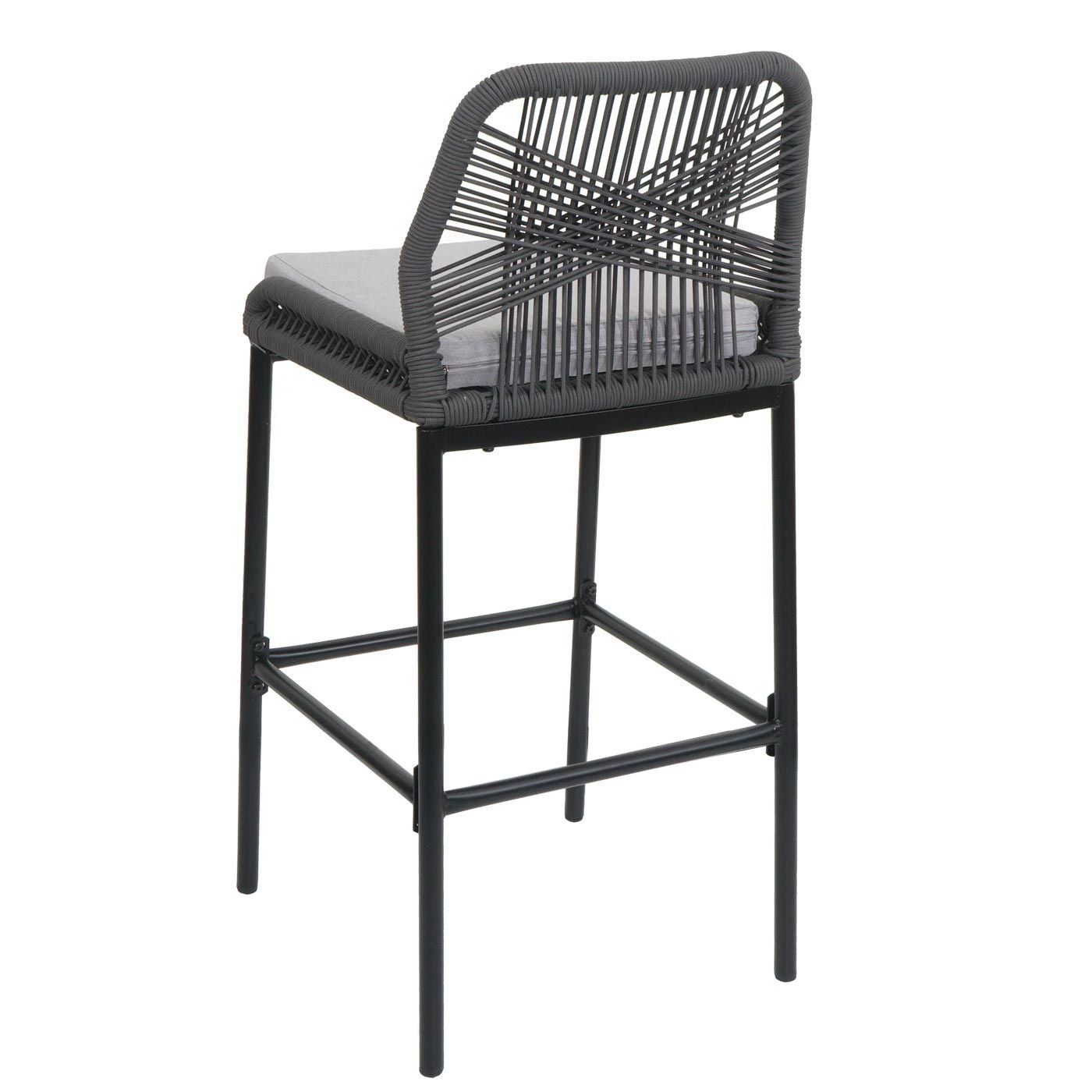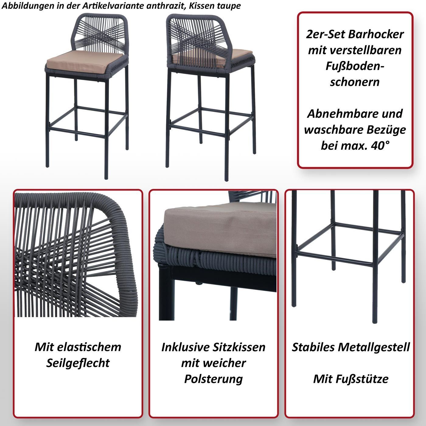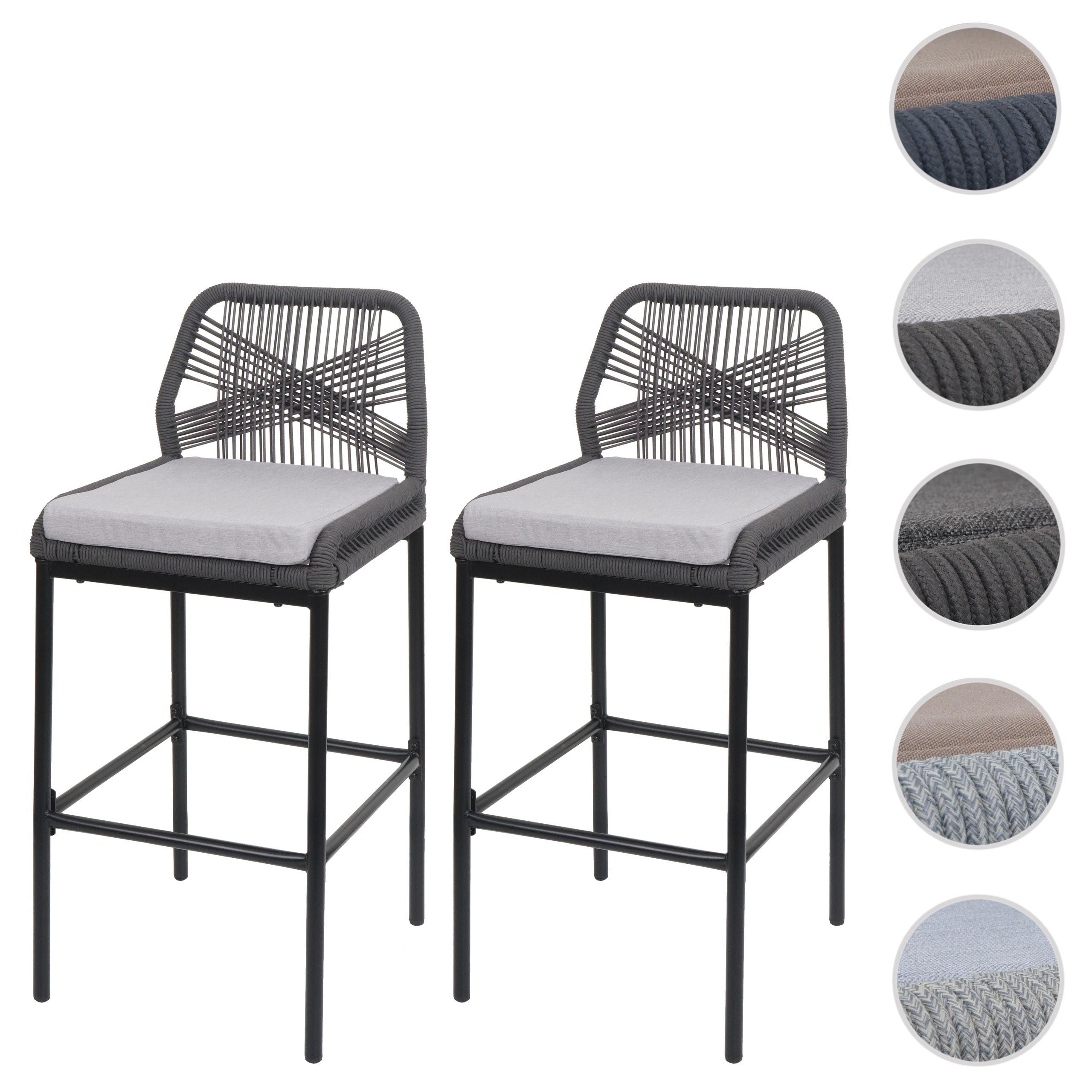 Mendler 2er-Set Rope-Barhocker HWC-O21, Outdoor Sitzpolster Seilgeflecht Metall