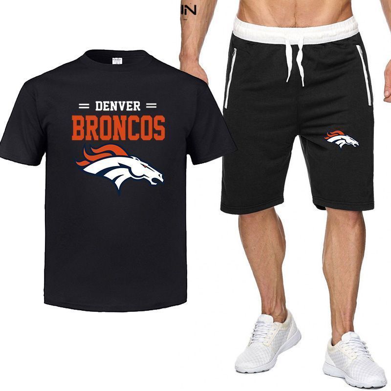 2er Set Sommer Herren Sportanzug Denver Broncos Fußball T-shirt Hose