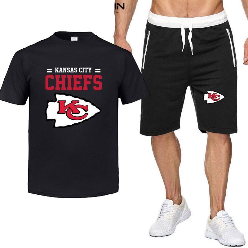 2er Set Sommer Herren Sportanzug Kansas City Chiefs Fußball T-shirt Hose