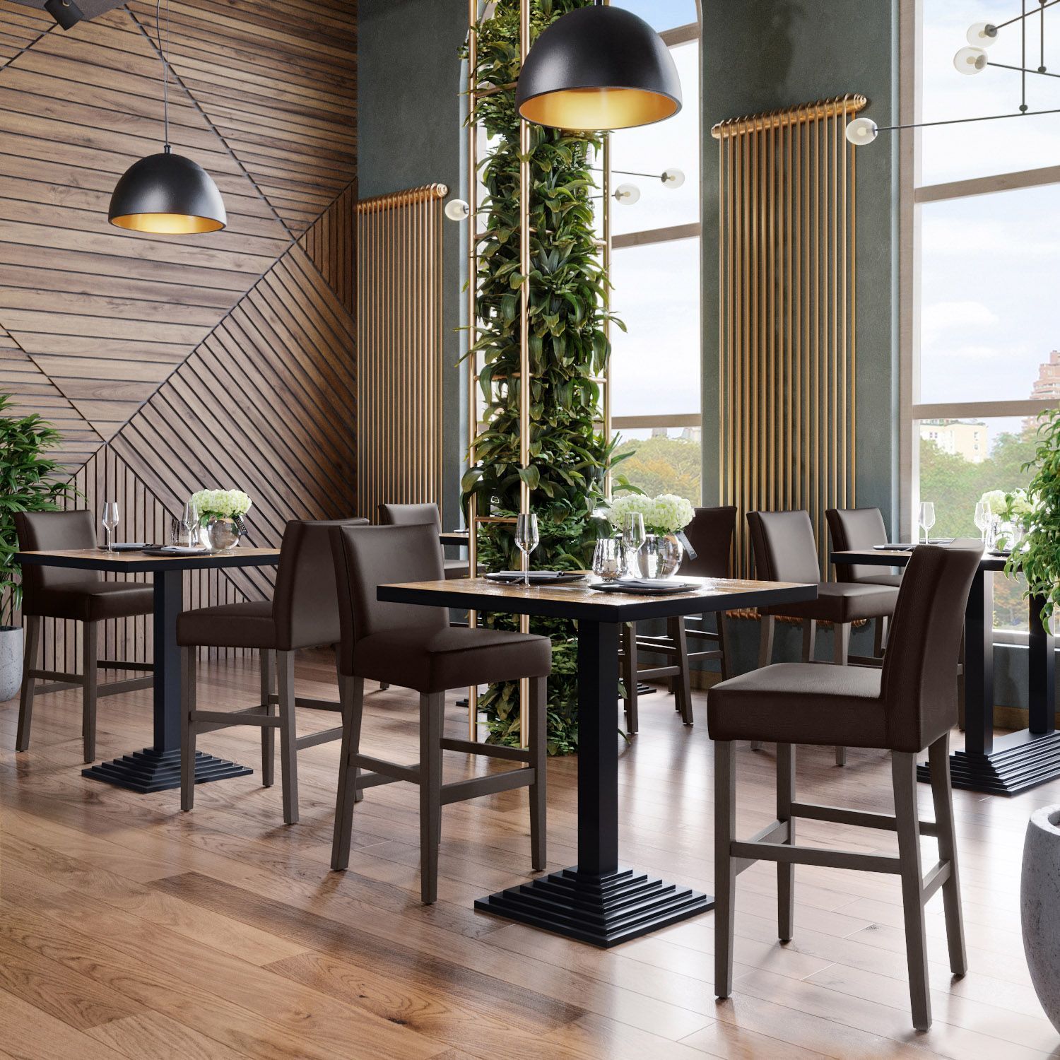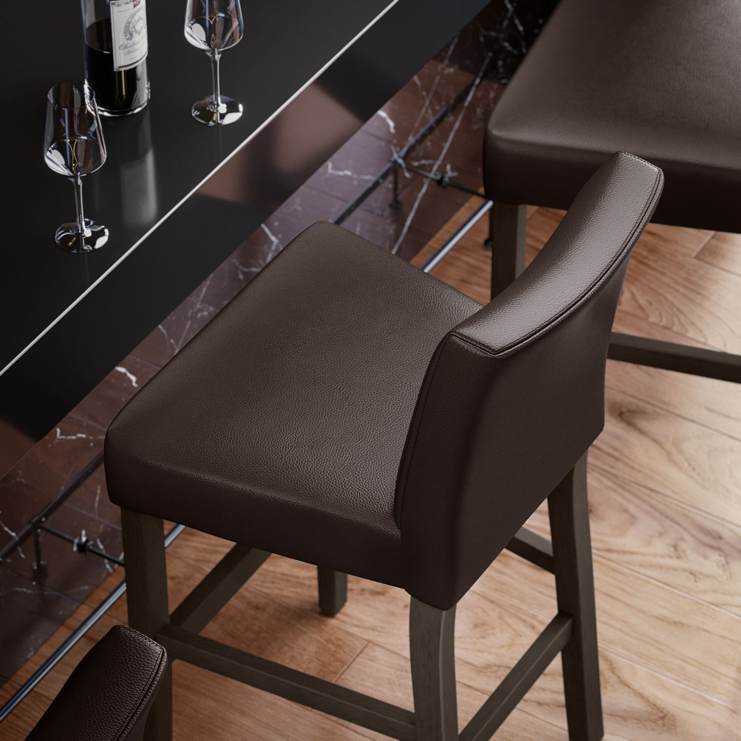 2er-Set TAYLOR | Gastro Barhocker | Leder | Holz | Braun | mit Lehne | Gastro Barhoc