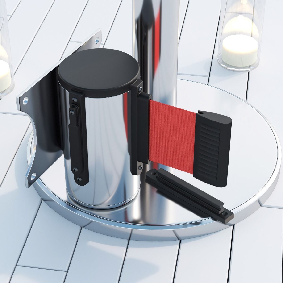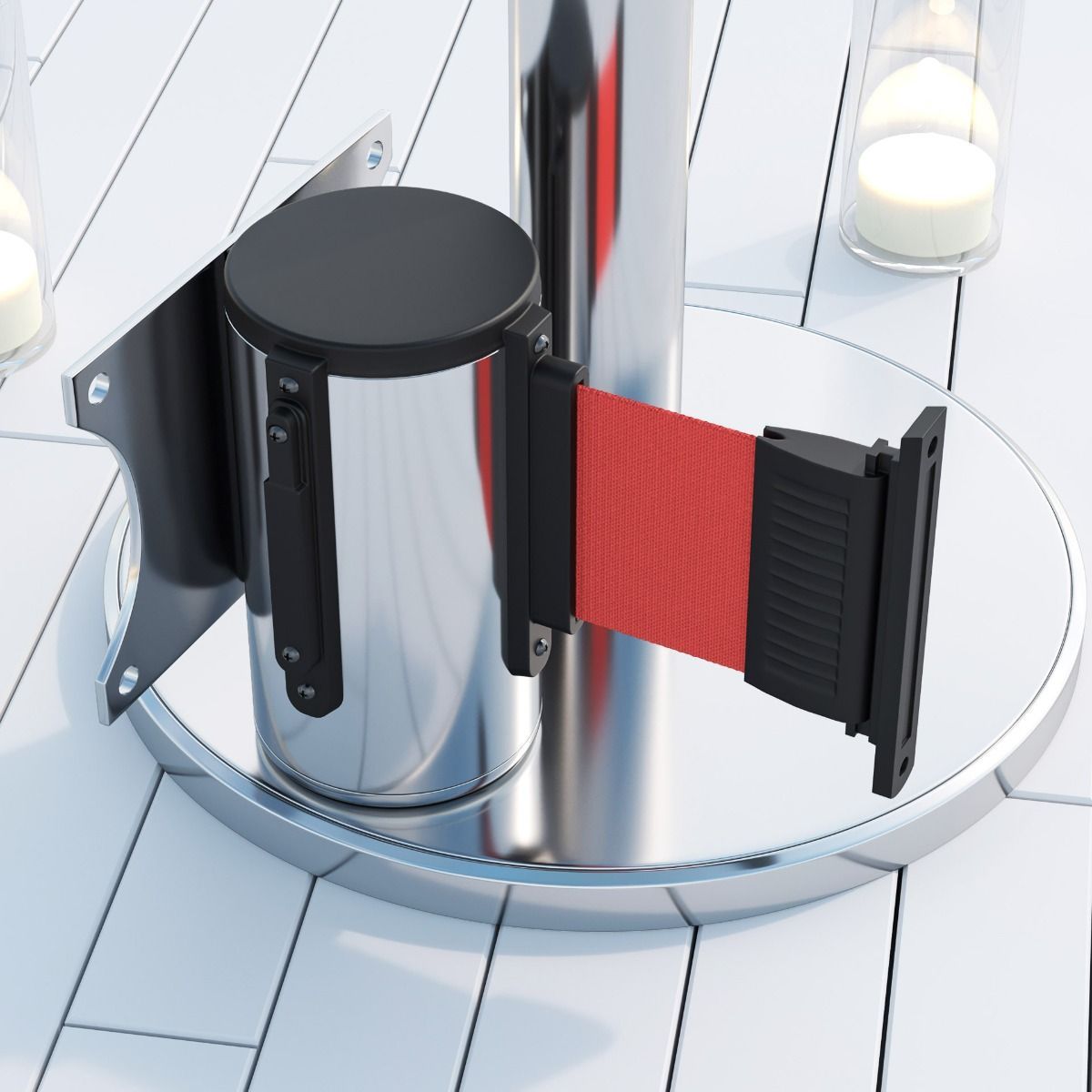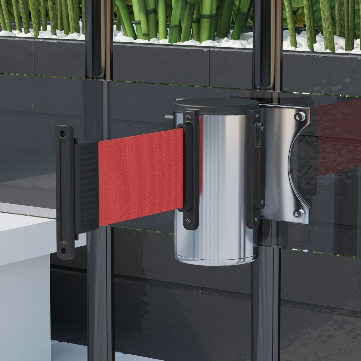 2er-Set Vincent | Wandgurtkassette | 2m | Chrom - Rot | Absperr Personenleitsystem A