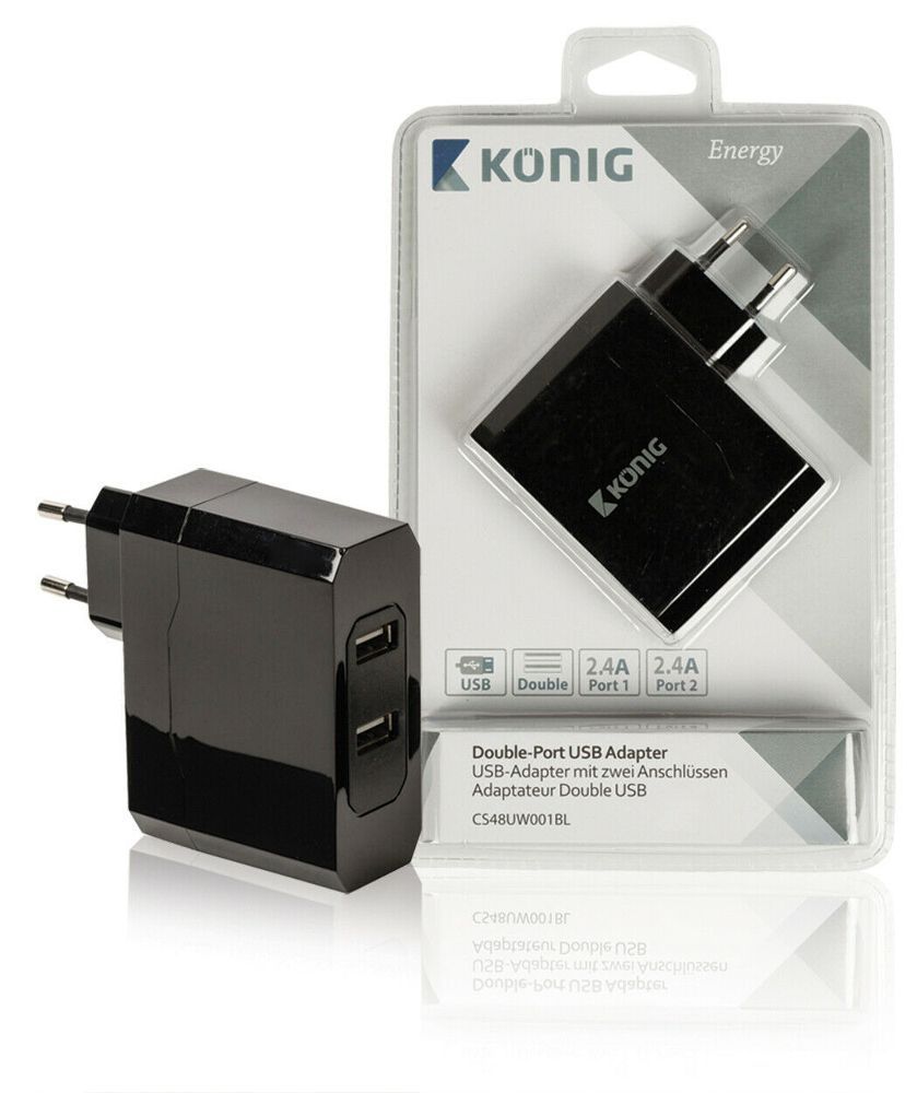 König 2fach Universal USB Adapter Ladegerät, 2.4 A und 2.4 A, schwarz, Ausgang 5V