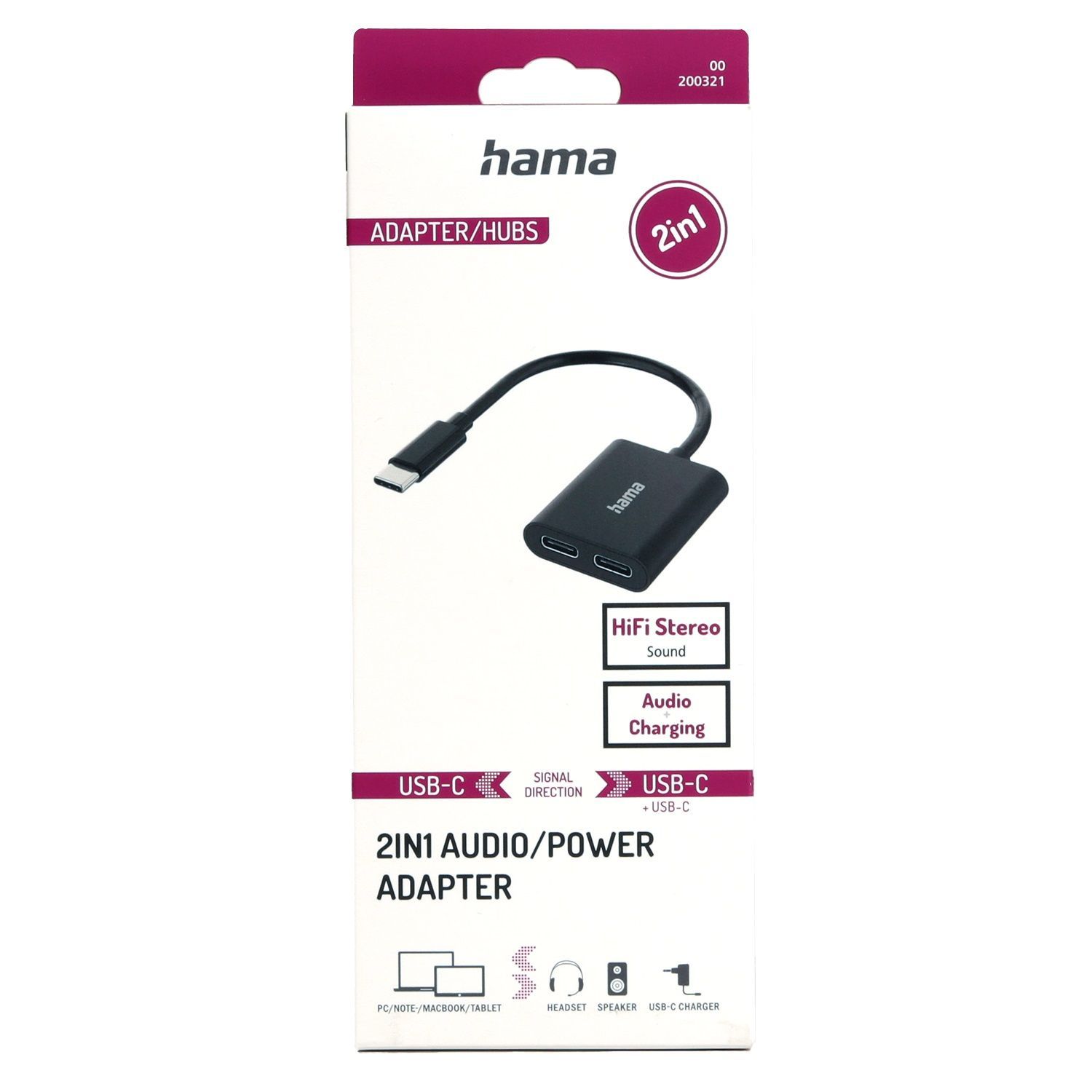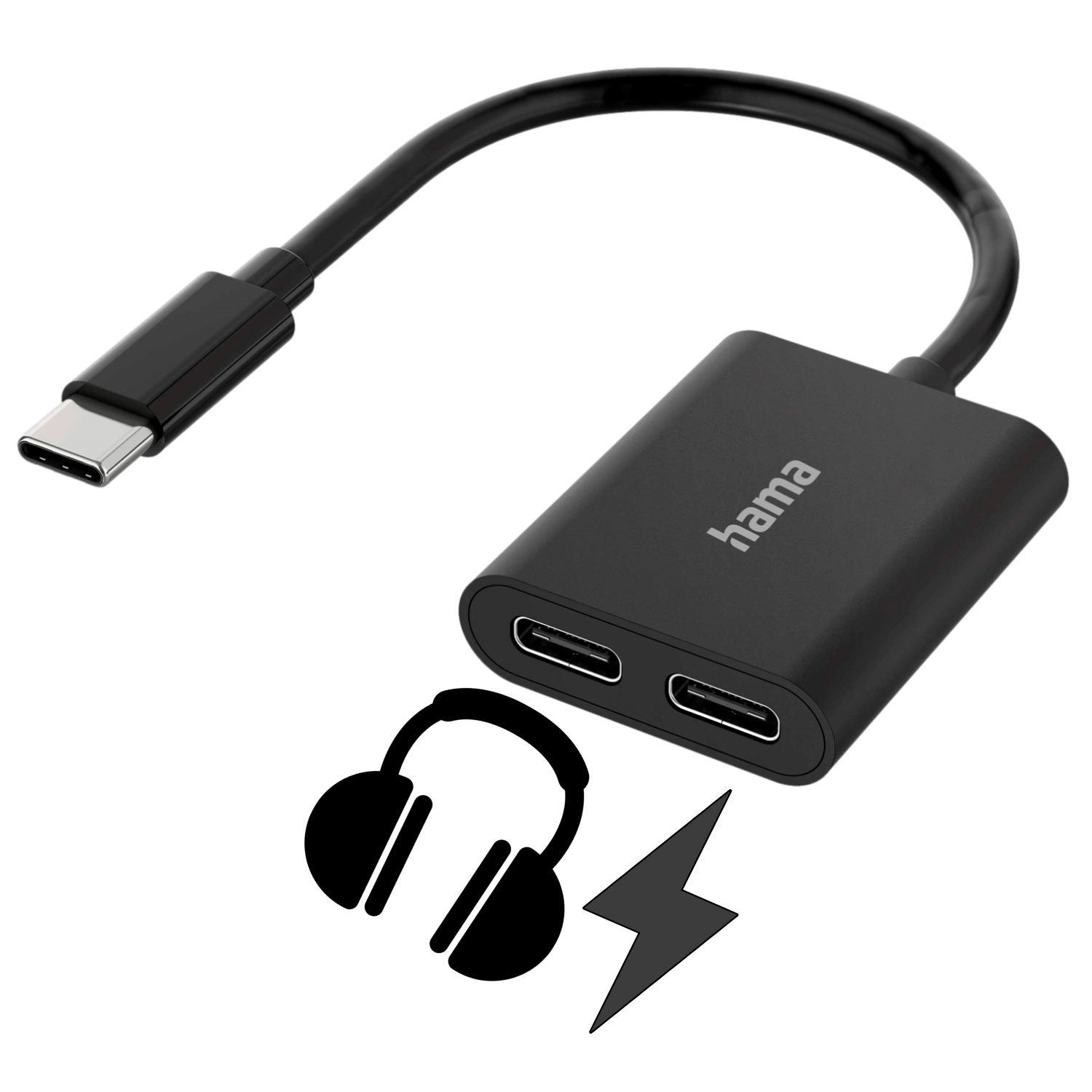 Hama 2in1 Audio-Adapter USB-C-Stecker zu 2x USB-C-Buchse Audio + Laden
