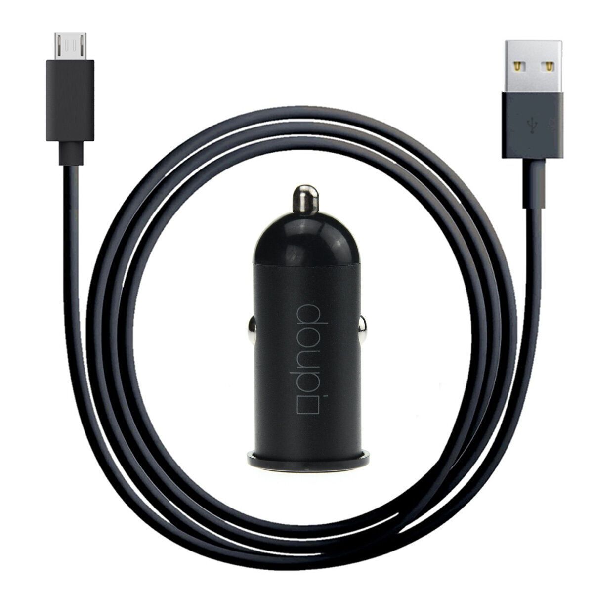 2in1 Lade Set Auto Adpater USB Micro Daten Lade Kabel 1m Smartphone Navi Schwarz