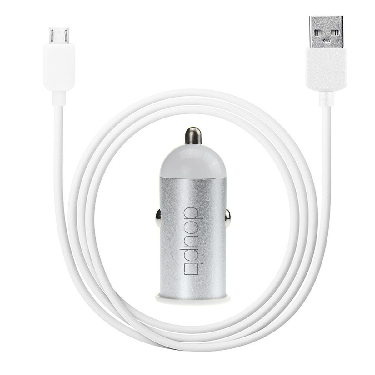 2in1 Lade Set Auto Adpater USB Micro Daten Lade Kabel 1m Smartphone Navi Weiß