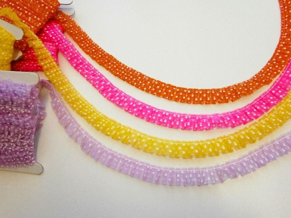 2m BORTE, BAND, Faltenborte, Rüschenband, Punkte, Orange, Pink, Flieder, Gelb,20 mm