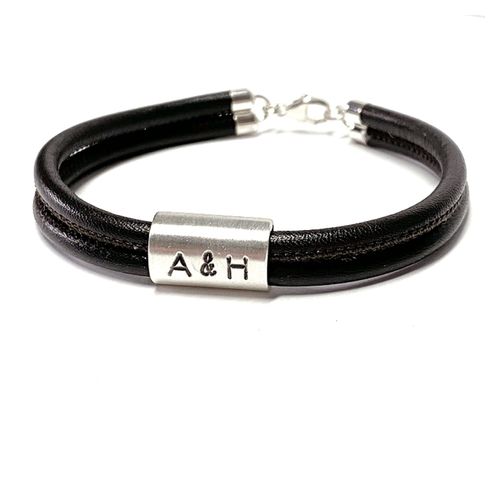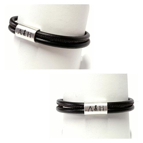 2reihiges Lederarmband mit individualisierbaren Initialen im Mittelteil 925/- Sterlin