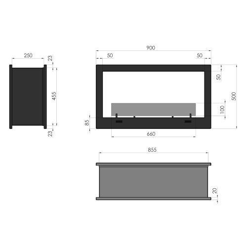 2SIDE 900 Tunnel-Ethanolkamin Kassette Einbauprofil