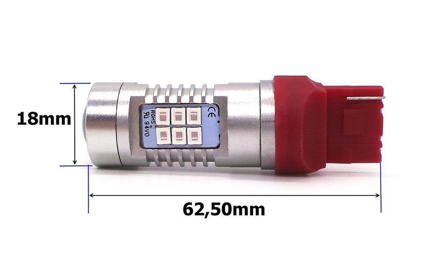 2Stück W21W LED-Glühbirne 7440 12V CANBUS rot 2000lm Off-Road